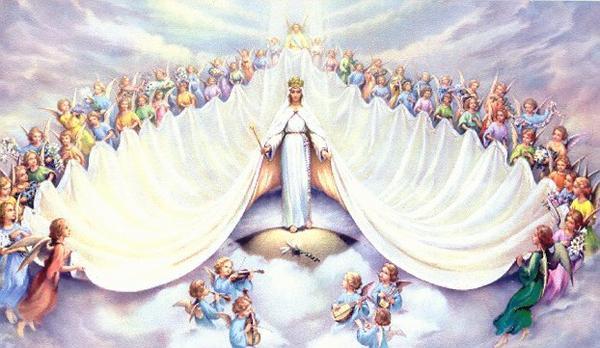 Dans les litanies de la Sainte Vierge, l’Église invoque notre mère du ciel sous les titres de Reine des apôtres, Reine des martyrs, Reine des confesseurs, Reine des Vierges, Reine conçue sans le péché originel, ou encore Reine de la paix, pour bien nous montrer que le domaine de sa royauté ne possède pas de limite.