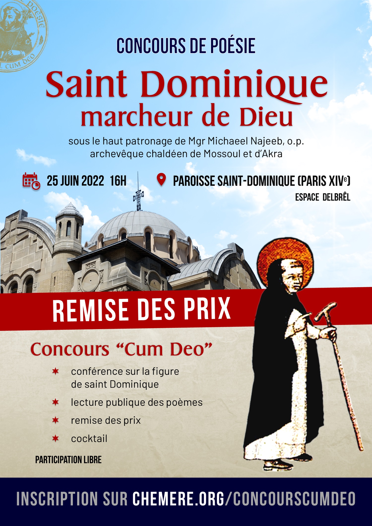 Accueil » Nos archives » Remise des prix du concours pour le 8è centenaire de la mort de Saint Dominique (FSVF) Summorum Pontificum Remise des prix du concours pour le 8è centenaire de la mort de Saint Dominique (FSVF) La Fraternité Saint-Vincent Ferrier a organisé un concours de poésie pour le 8è centenaire de la mort de Saint Dominique. La remise des prix aura lieu ce samedi. Concours Cum Deo Article précédentPhotos: Fête Dieu à Riaumont Article suivantDes signes d'espérance 23 juin 2022