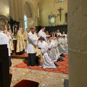 Six prêtres ont été ordonnés ce matin dans la cathédrale de Lescar pour la Fraternité Sacerdotale Saint-Pierre par Mgr Marc Aillet, évêque de Bayonne, Lescar et Oloron.