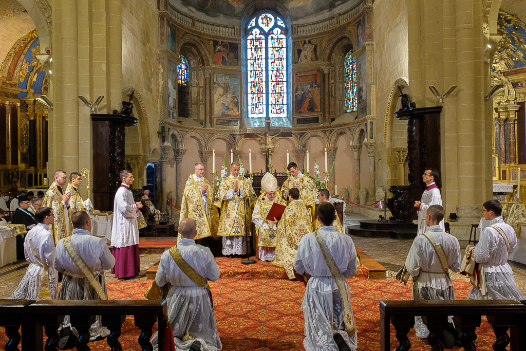 Samedi 2 juillet, Mgr Marc Aillet, évêques de Bayonne, Lescar et Oloron, a ordonné 6 prêtres pour la Fraternité Saint-Pierre en la Cathédrale de Lescar (dont 3 Français).