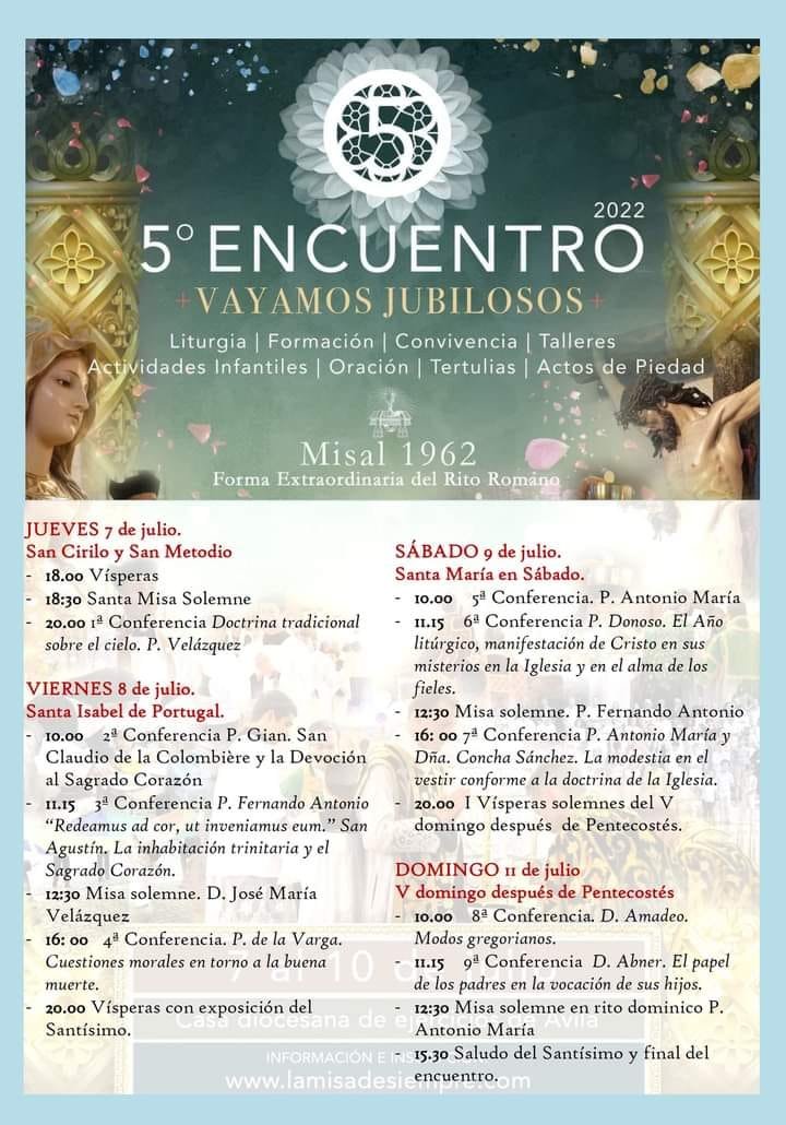 La 5è édition de la Rencontre Vayamos Jubilosos s’est tenue à Avila (Espagne) pendant 4 jours. Les participants ont pu consacrer du temps au Seigneur, aller à sa rencontre, l’adorer, répondre au devoir de chaque catholique d’être bien formé dans la Foi et aux parents de la transmettre pleinement et sans déviations à leurs enfants.