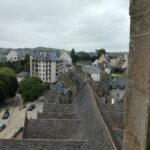 Un lecteur nous transmet des photos de la tour avec les quatre cloches restantes, et d’où l’on voit tout le centre ville, ainsi qu’en haut de l’escalier, et plus haut, l’église fortifiée de la Trinité de Brelevenez – cette dernière est ouverte de 10 à 17h tous les jours.