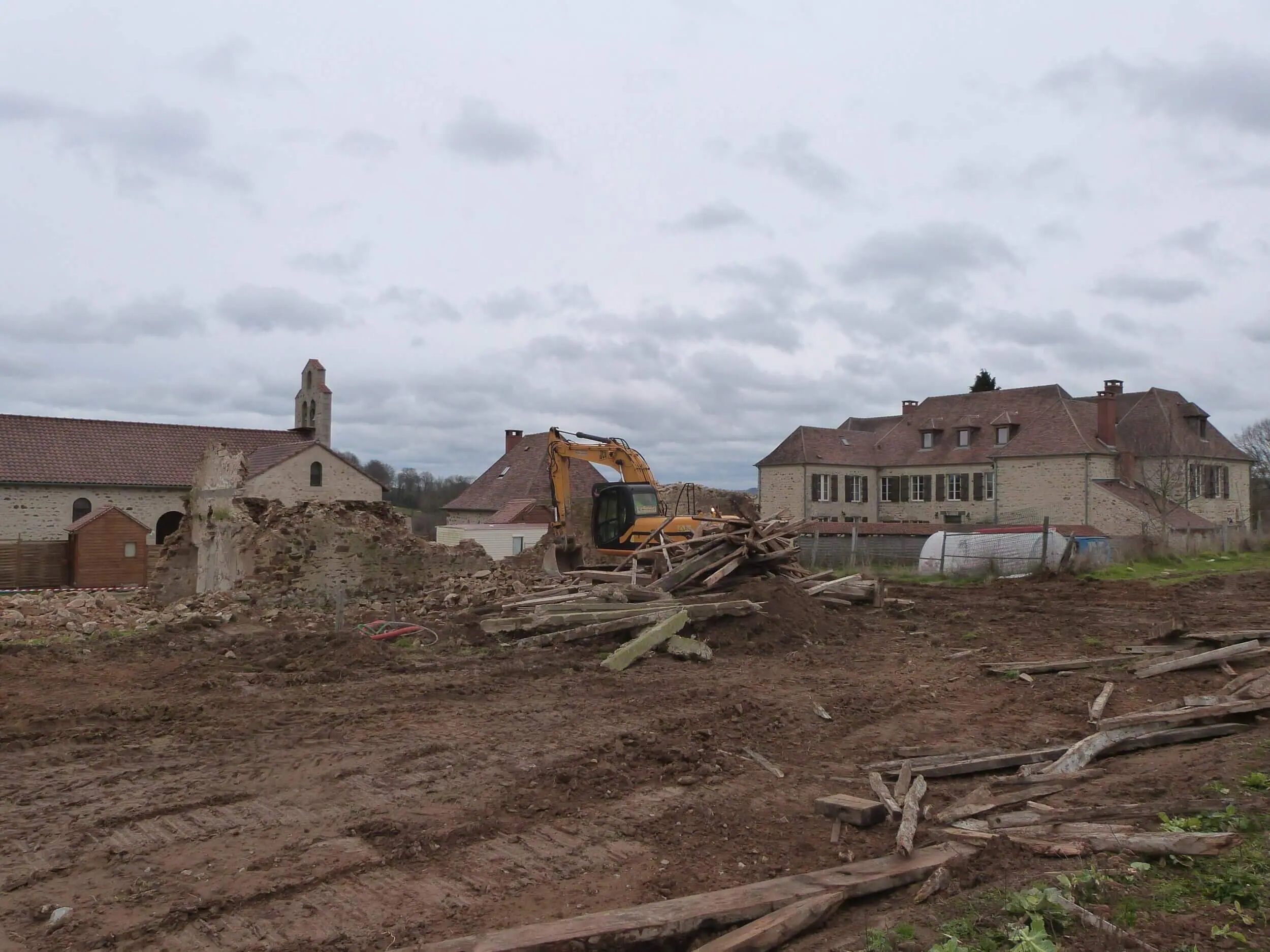 Préparatifs du terrain où sera construit le nouveau bâtiment. Il comprendra la cuisine, le réfectoire des hôtes et celui des sœurs au rez-de-chaussée ; 15 cellules pour les sœurs et 5 chambres de retraitantes à l’étage.