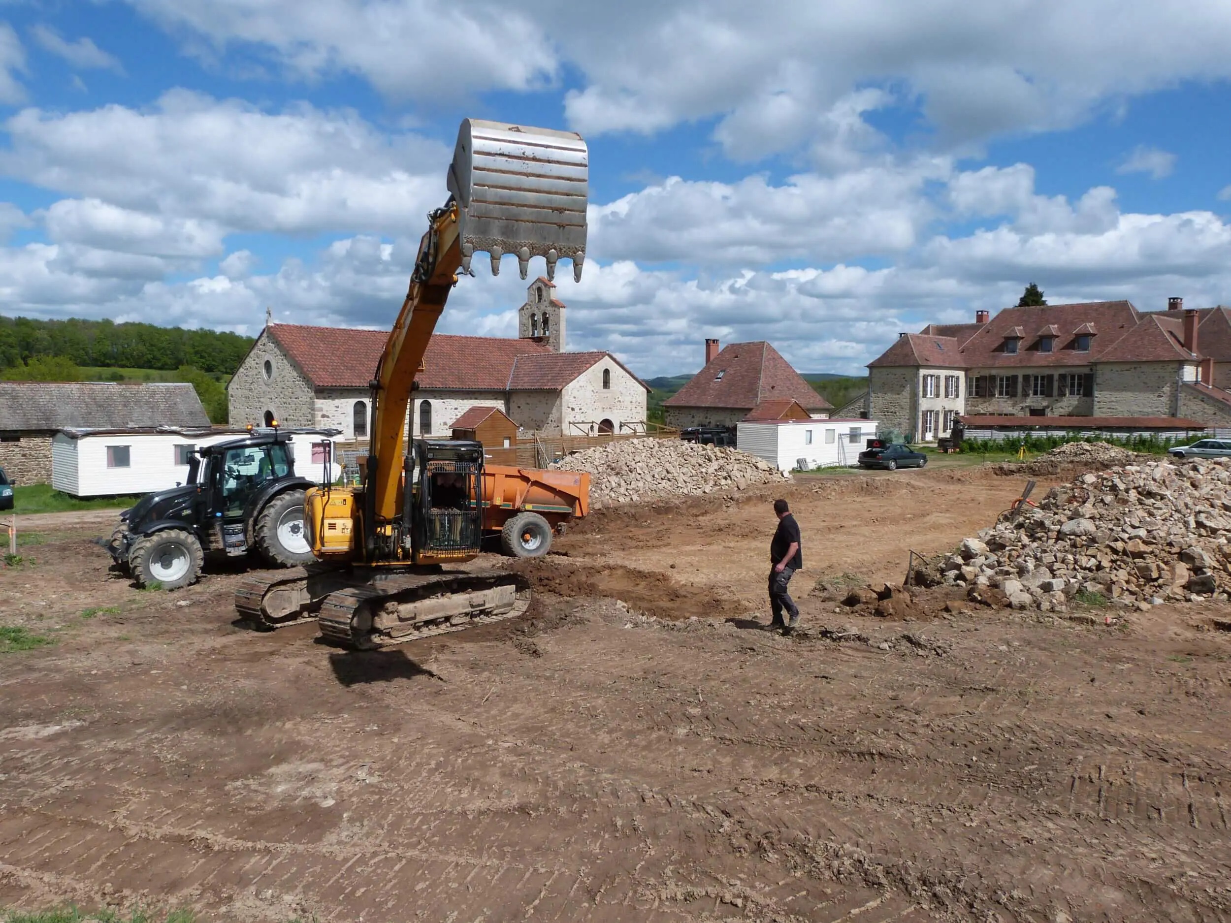 Oui, mission accomplie ! Merci M. le terrassier et tous les amis ! Le 14 mai le terrain est décaissé, le maçon peut commencer l’implantation du tracé des fondations.