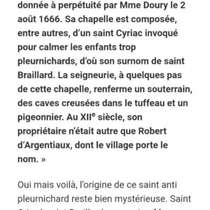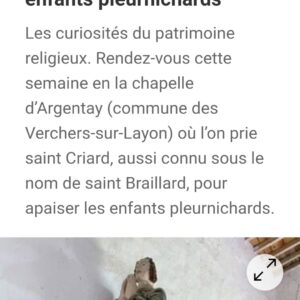 « Oui mais voilà, l’origine de ce saint anti pleurnichard reste bien mystérieuse. Saint Criard, saint Braillard, on entend les deux et lui trouve plein d’autres noms encore