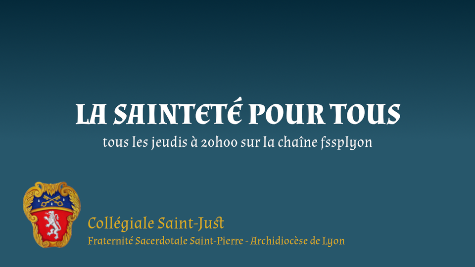 Accueil » Nos archives » La Sainteté pour tous Summorum Pontificum La Sainteté pour tous Les prêtres de la Fraternité Saint-Pierre à Lyon proposent chaque jeudi une petite vidéo pour apprendre à devenir des saints : La sainteté pour tous à découvrir tous les jeudis à 20h00 sur notre chaîne YouTube. Leçons de 10 minutes pour apprendre à devenir des saints. FSSP Lyon Article précédentMgr de Kérimel soutient les immigrés clandestins Article suivantLe redressement de l’Église 10 septembre 2022