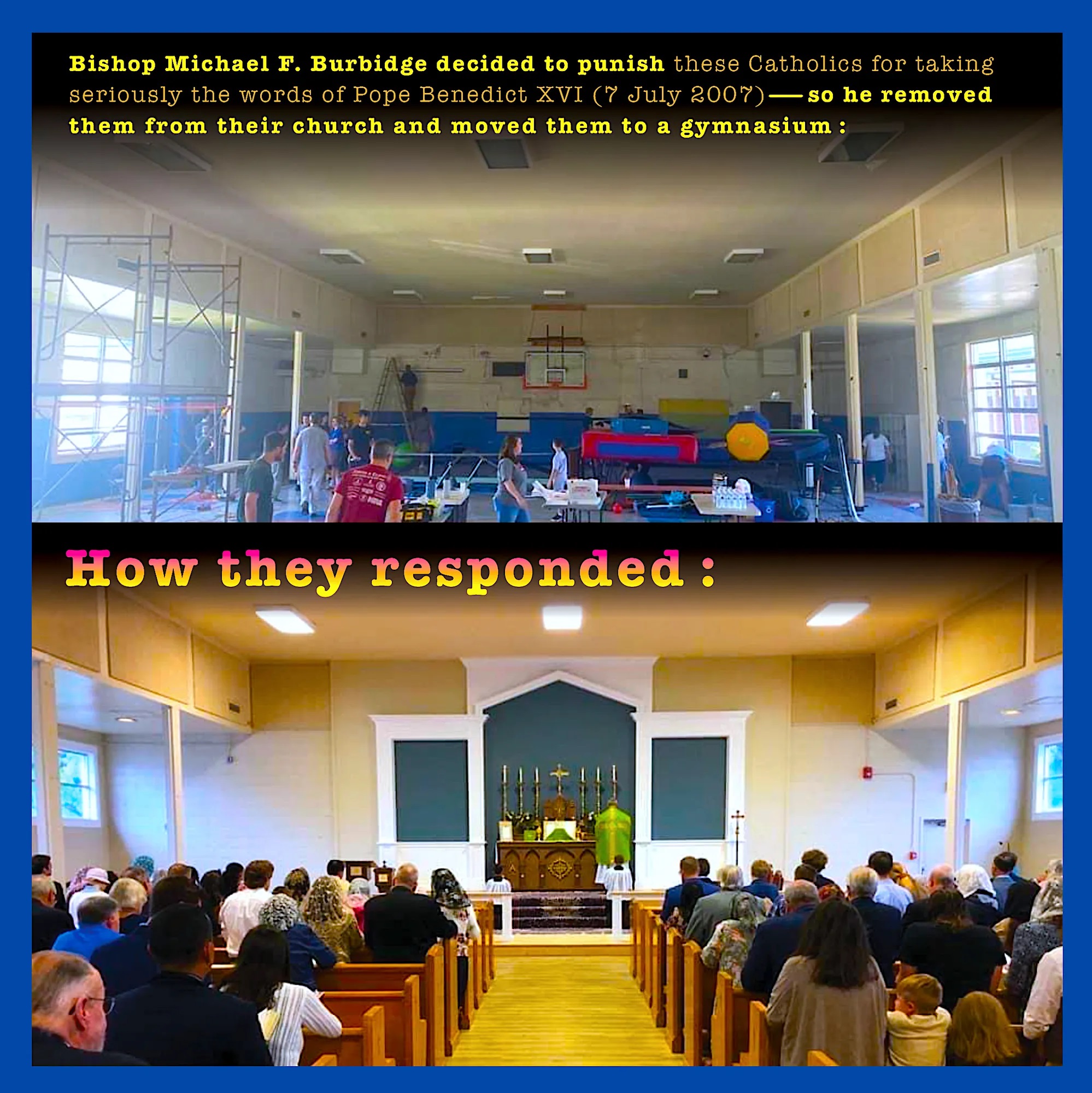 A Gainesville, la messe traditionnelle est donc célébrée dans un gymnase. Mais regardez la réponse des fidèles !