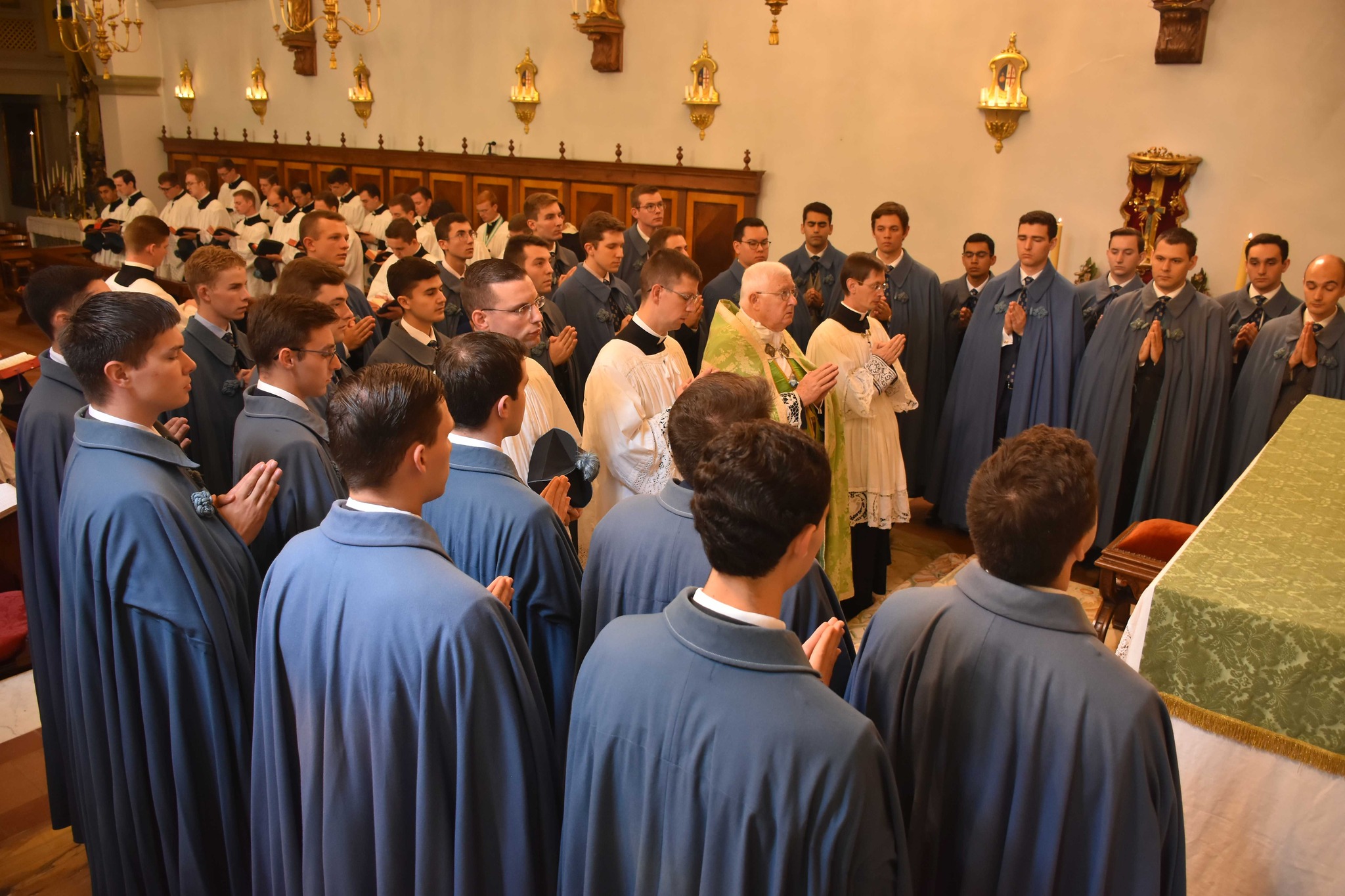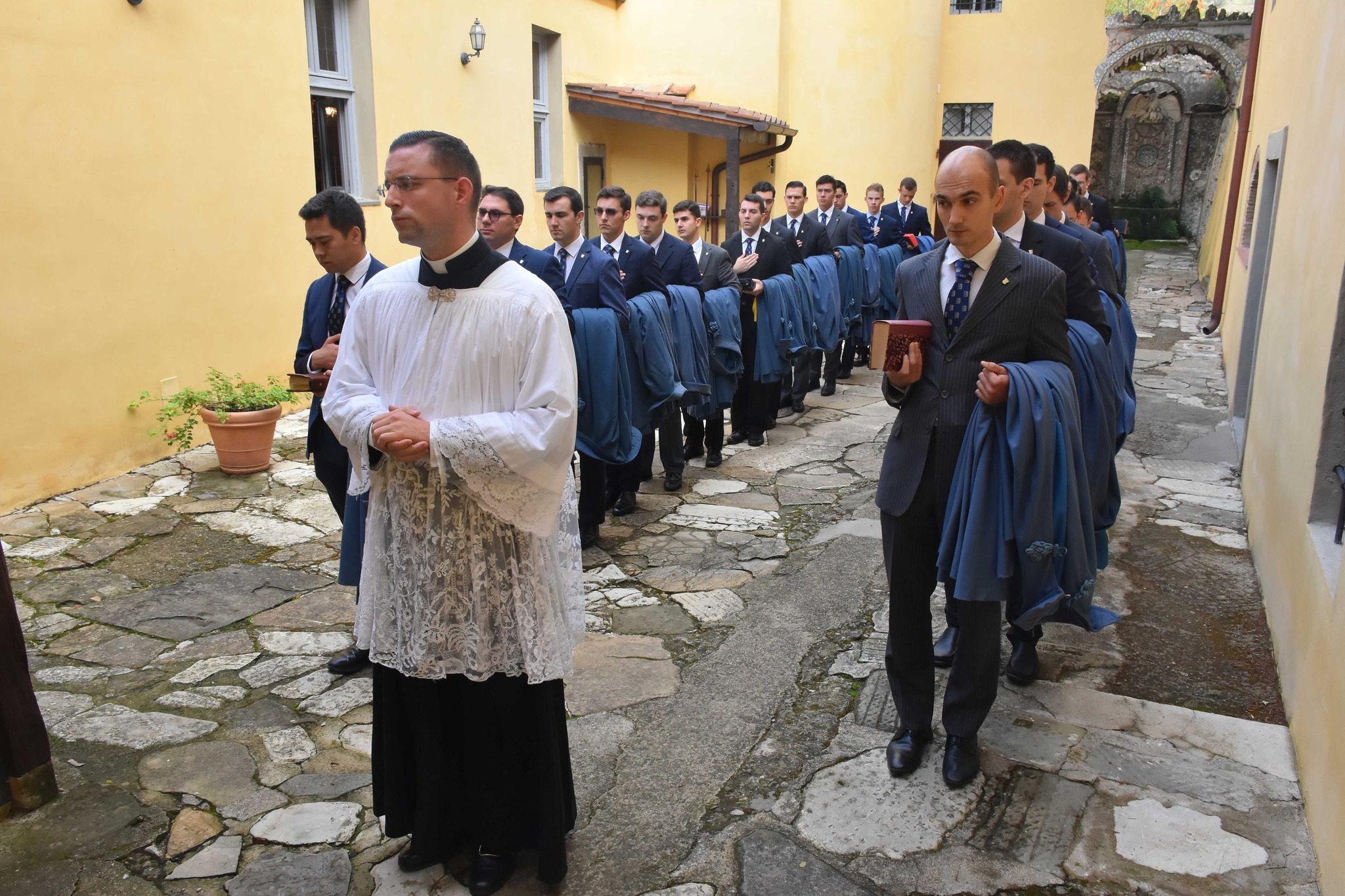 Après s’être préparés quelques jours dans la maison de nos Sœurs Adoratrices au Noirmont, les nouveaux séminaristes de l’Institut du Christ Roi ont reçu hier leur habit de chœur des mains de Monsieur le Supérieur du Séminaire Saint Philippe Néri. 34 jeunes sont entrés à Gricigliano dont 8 Français.