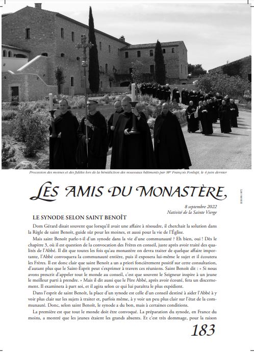 Dans l’éditorial de la dernière lettre aux Amis du Monastère (Septembre 2022, n°183), Dom Louis-Marie évoque la règle de Saint-Benoit et le conseil qui aide au gouvernement du monastère :