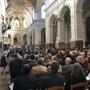 Il y avait beaucoup de monde ce matin à la messe célébrée par le Père Abbé de Barroux, Dom Louis-Marie, OSB. Outre des prêtres et religieux des communautés « amies » du Pèlerinage Notre-Dame de Chrétienté, les fidèles étaient venus en nombre. Dans son homélie, Dom Louis-Marie a défendu une jeunesse combative, qui a été humiliée. Il a notamment exhorté à s’inspire de la Règle de Saint-Benoît.