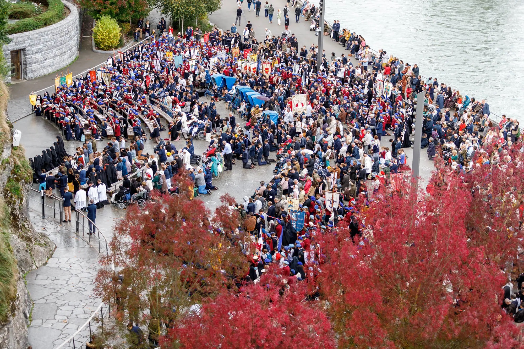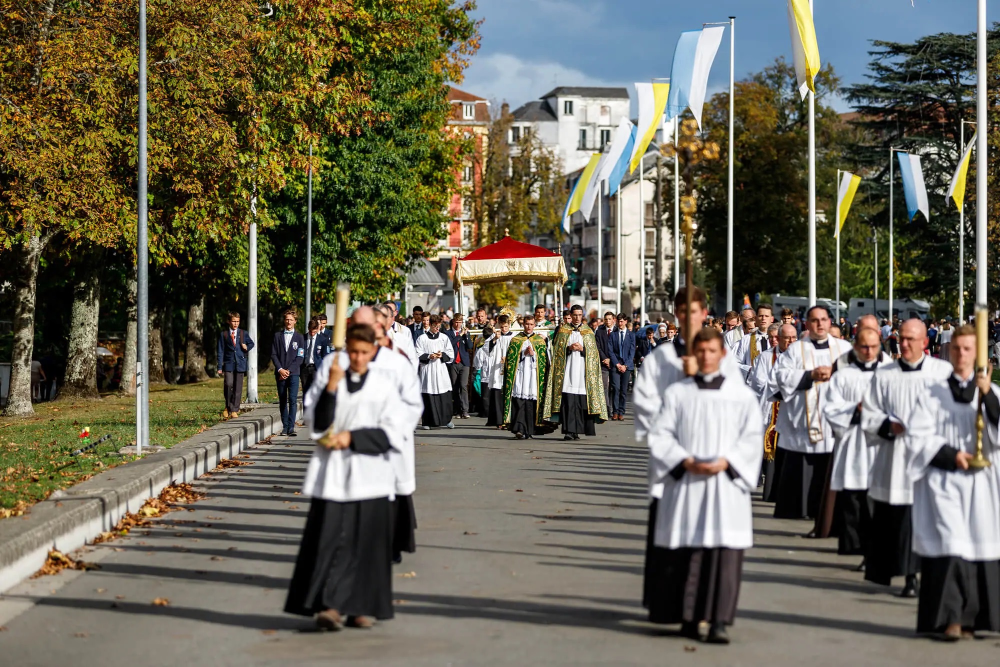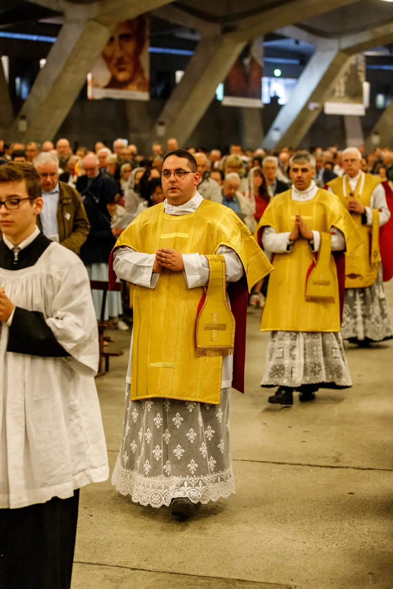 Samedi 22 octobre, un chapelet a été récité avant la messe solennelle célébrée dans la basilique Saint-Pie X, suivie du chemin de Croix dans la prairie (pour les malades) et sur la montagne des Espéluges. Le soir, la traditionnelle procession aux flambeaux a embrasé le sanctuaire.
