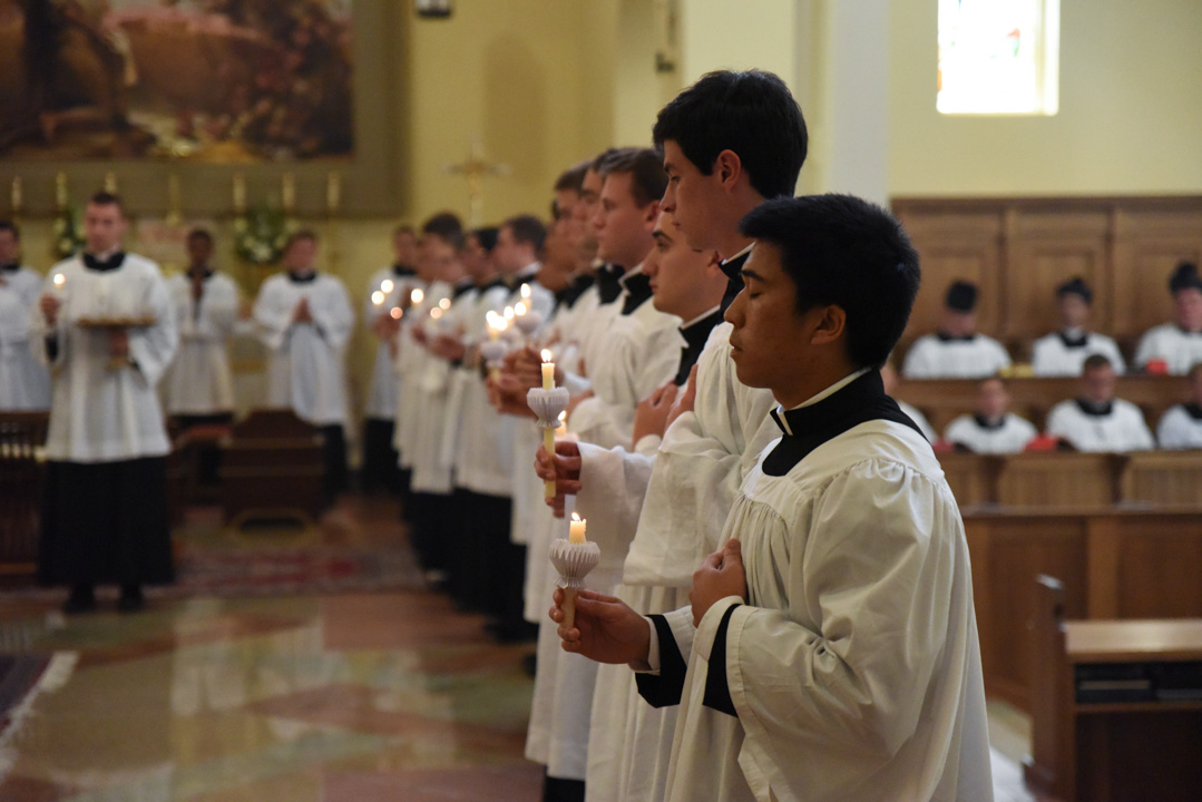 Le 22 octobre au Séminaire Our Lady of Guadalupe de Denton, séminaire nord américain de la Fraternité Saint-Pierre, 16 séminaristes ont reçu la soutane et été tonsurés lors de la messe pontificale célébrée par Mgr Robert Ree, évêque auxiliaire de Boston.