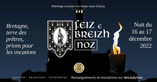 Parce que Feiz e Breizh se veut missionnaire en Bretagne, terre des prêtres, et pas seulement deux jours par an, nous lançons pour la première fois cette année : Feiz e Breizh Noz, une marche de nuit aux flambeaux pour les vocations. Ce pèlerinage est ouvert à tous. Ne tardez pas à vous inscrire !
