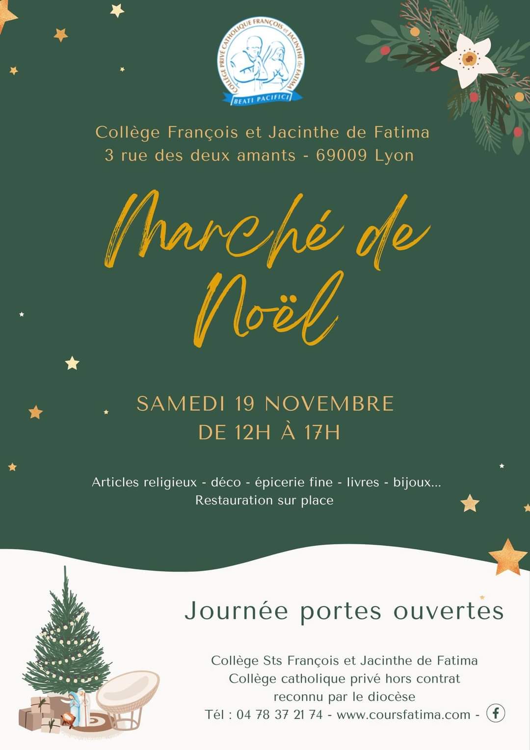 Le Collège Saints François et Jacinthe de Fatima vous invite à son Marché de Noël le samedi 19 novembre de 12h à 17h.