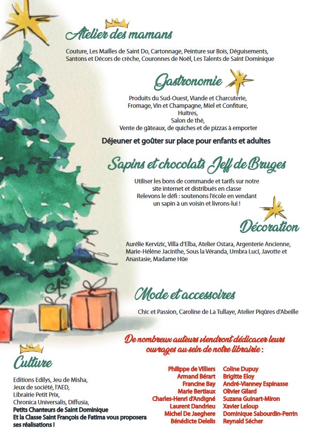 Son marché de Noël aura lieu le samedi 26 novembre dans les écoles de l’école.