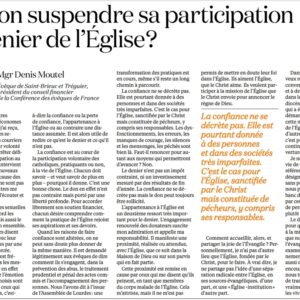 Une tribune de Mgr Moutel, évêque de Saint-Brieuc et Tréguier (Bretagne) témoigne du malaise croissant que suscitent les affaires d’abus sexuels du clergé, et notamment leur gestion par l’Eglise, chez les donateurs – majoritairement âgés de plus de soixante ans – du denier du culte.