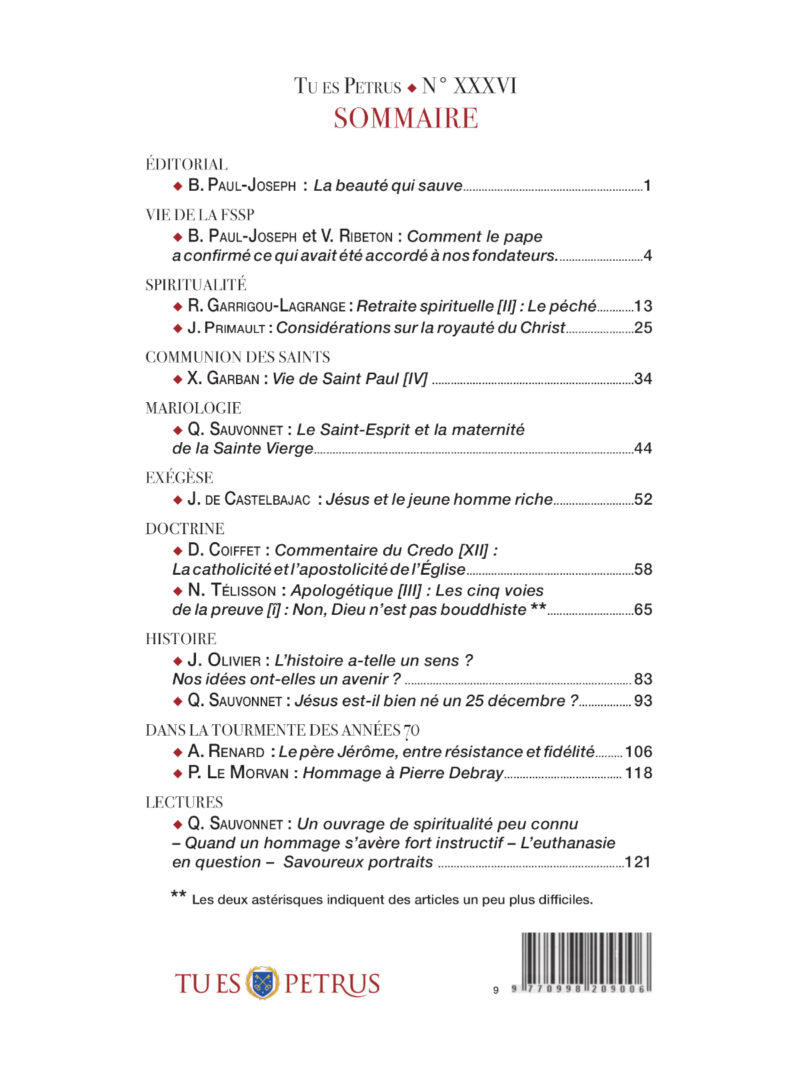 La revue de formation de la Fraternité Saint-Pierre, Tu es Petrus, a fait peau neuve mais reste fidèle à ce qu’il a toujours été : une revue de formation qui propose 4 fois par an une réflexion sur l’actualité et des articles de fond à la lumière des grandes vérités de la foi et des enseignements du magistère.