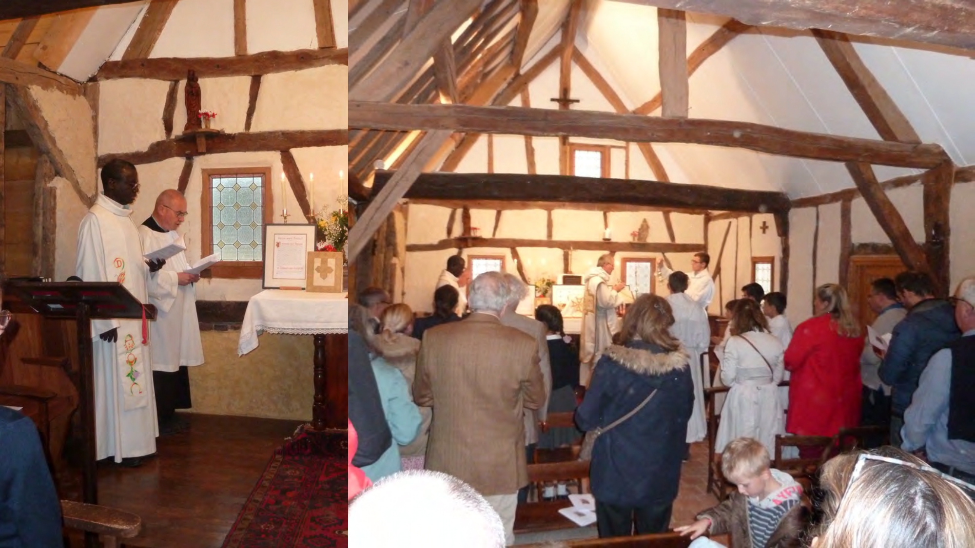 Pour cette journée amicale et familiale, la Grand’Messe a été célébrée par le RP Christophe, de l’Institut de Sainte-Croix de Riaumont en présence également du curé de la paroisse. Mgr Christian Nourrichard, évêque d’Evreux, était présent au repas.