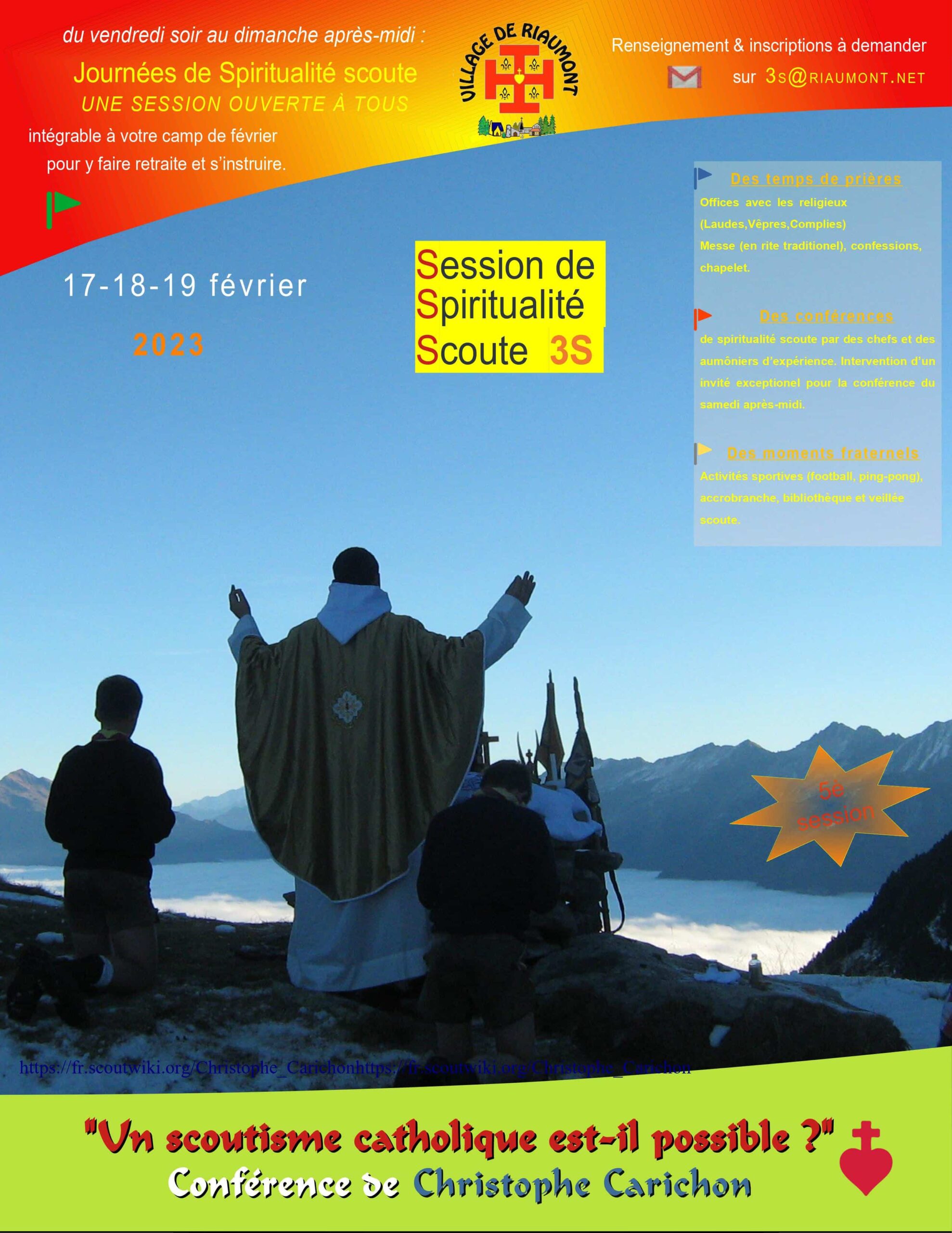 5è Session de Spiritualité Scoute à Riaumont pour H.P., Routiers, Guides Aînées, chefs & cheftaines du vendredi 17 février 2023 (17h) au dimanche 19 février 2023 (14h).