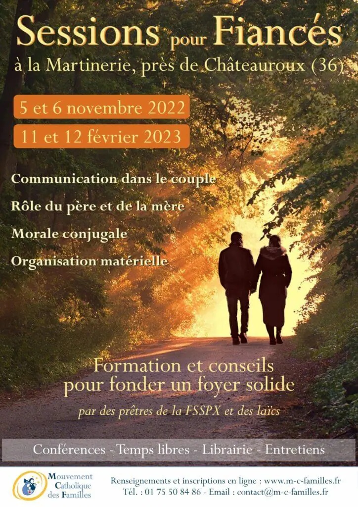 Le Mouvement Catholique des Familles propose une session de préparation au Mariage accompagnée par des prêtres de la Fraternité Saint-Pie X les 12 et 13 février à Châteauroux.