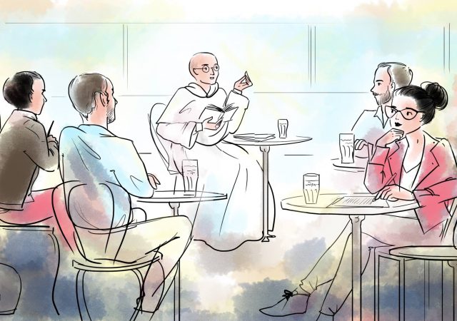 Depuis 20 ans, chaque 1er mardi du mois (hors vacances scolaires), un père de la Fraternité Saint-Vincent Ferrier anime ce café-caté dans le quartier latin.