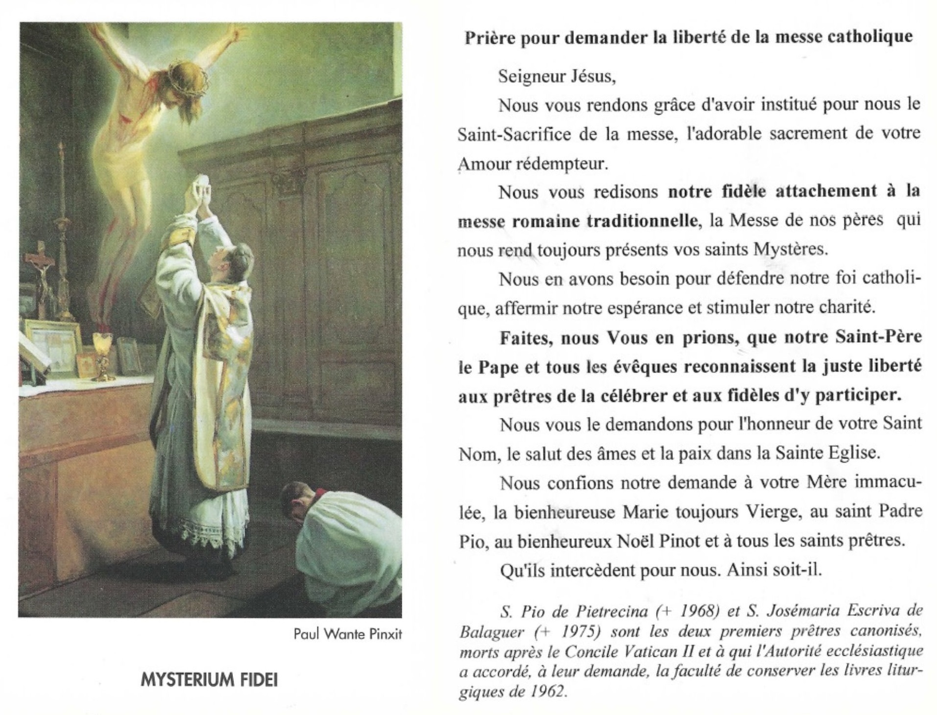2° quant à saint Padre Pio, il est mort AVANT la réforme dudit saint Paul VI et, s’il avait demandé quelque chose, ce serait de célébrer selon 1962 et non selon les réformes de 1965 qui ne concernent que le rite « traditionnel »… D’après les témoignages reçus à Rome, il n’aurait rien demandé, mais certes témoigné ne pas aimer certaines suppressions de 1965, et continué à célébrer comme « avant » soit 1962.