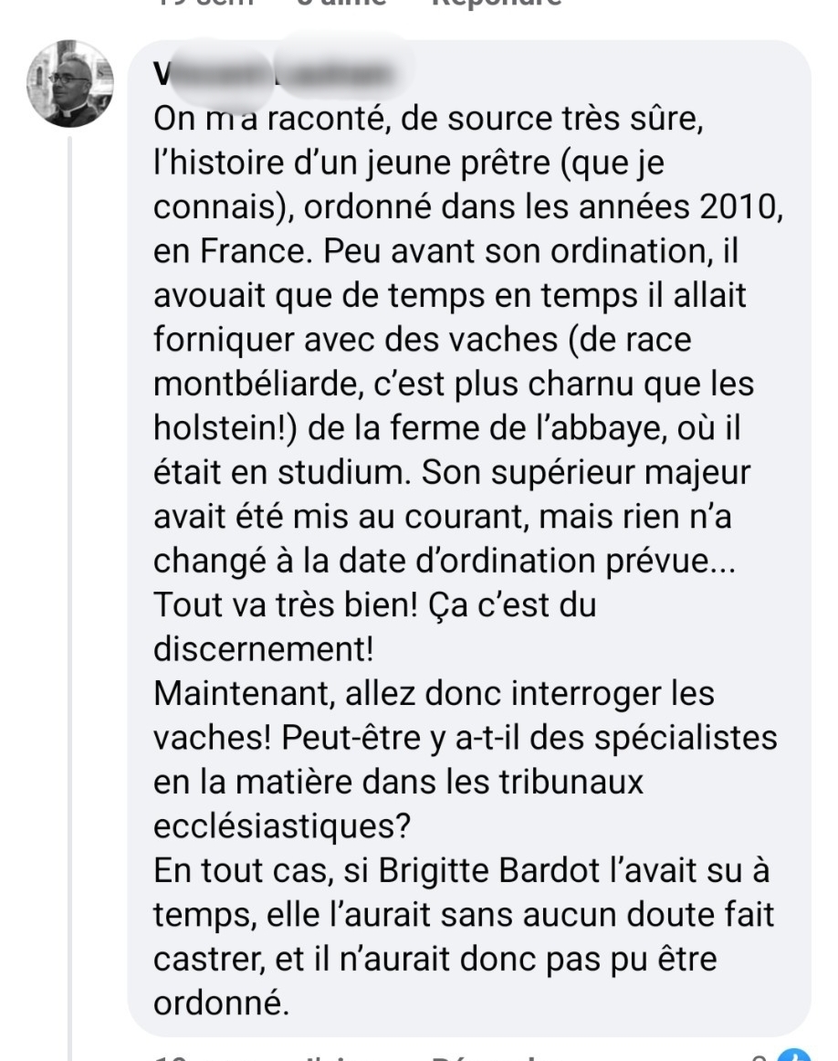 Un peu d’histoire ne nuit pas. Les pénitentiels des Ve – VIe siècles et plus signalent les péchés de bestialité et d’homosexualité, fort nombreux semble-t-il, compte tenu de l’importance / longueur des paragraphes qui leur sont consacrés, et pas seulement chez les clercs.