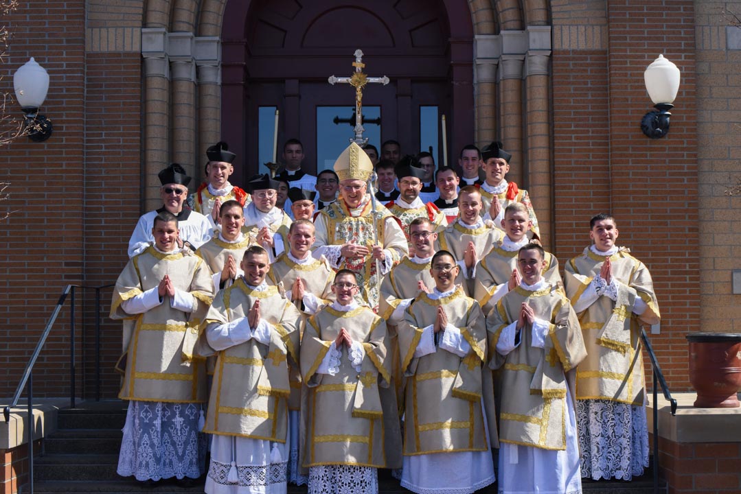 Ce samedi 25 mars, fête de l’Annonciation, Mgr Thomas Gullickson, nonce apostolique émérite, a ordonné 11 diacres pour la Fraternité Saint-Pierre dans la chapelle Saints Pierre et Paul du Séminaire Our Lady of Guadalupe de Denton (USA).