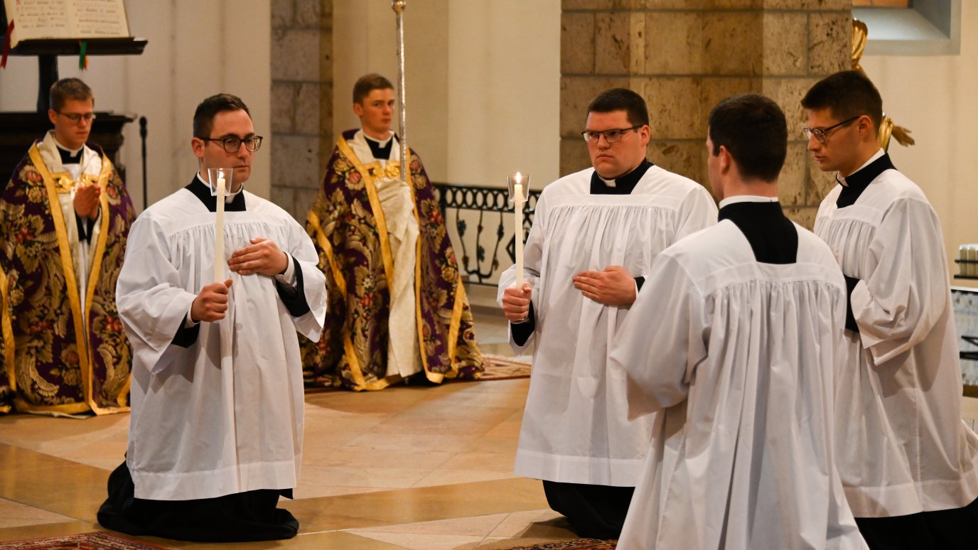 Le 25 mars 2023, au Séminaire Saint-Pie X d’Écône (Suisse), Mgr Bernard Tissier de Mallerais a conféré des ordres mineurs à 4 séminaristes dans l’église du Cœur Immaculé de Marie. Il a également ordonné sous-diacres 9 séminaristes d’Écône (8 Français et 1 Gabonais) et 3 capucins de Morgon.