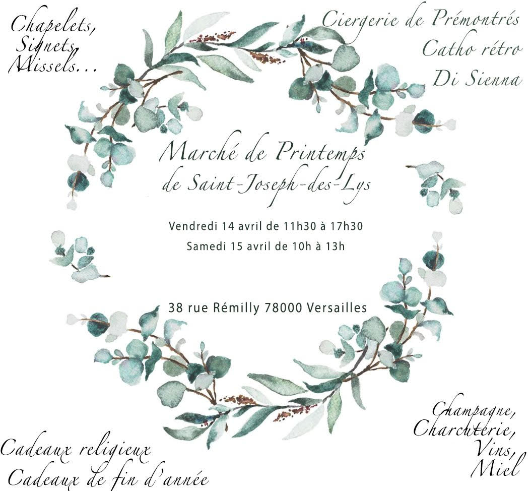 L’Ecole vous invite à son Marché de Printemps le vendredi 14 et le samedi 15 avril dans les locaux de l’Ecole (38 rue Rémilly) à Versailles pour faire vos cadeaux à l’occasion des cérémonies de fin d’année :