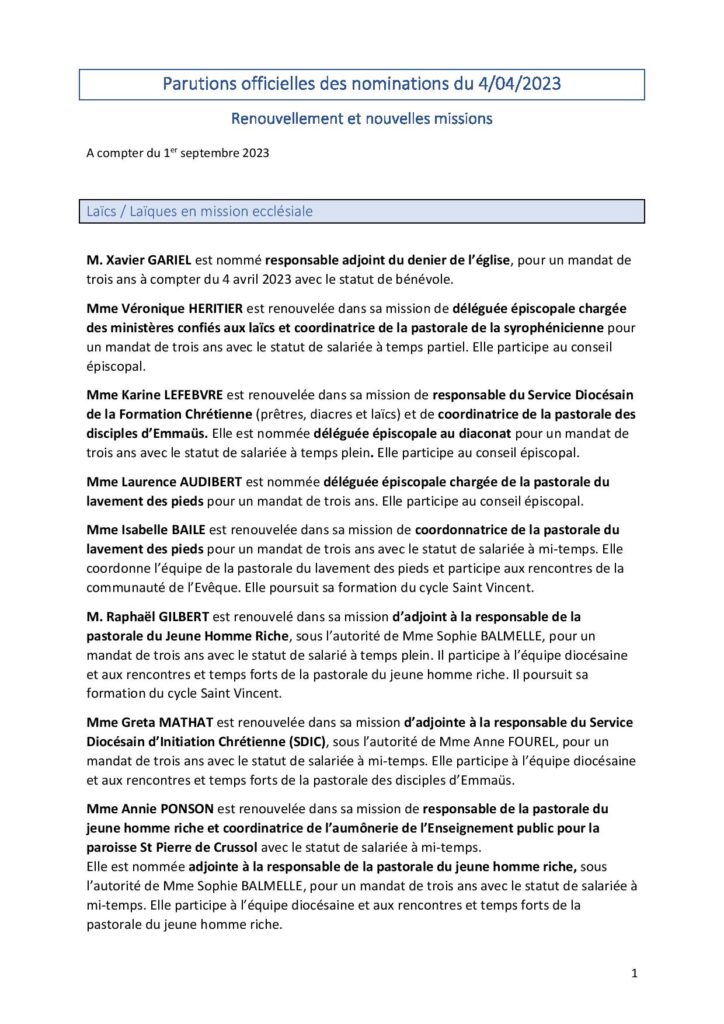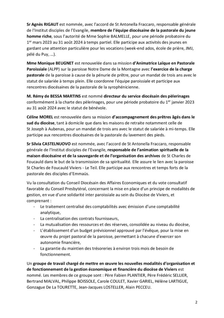 Le diocèse de Viviers en Ardèche a publié ses nominations lors de la messe chrismale – celles des laïcs précèdent celles des prêtres.