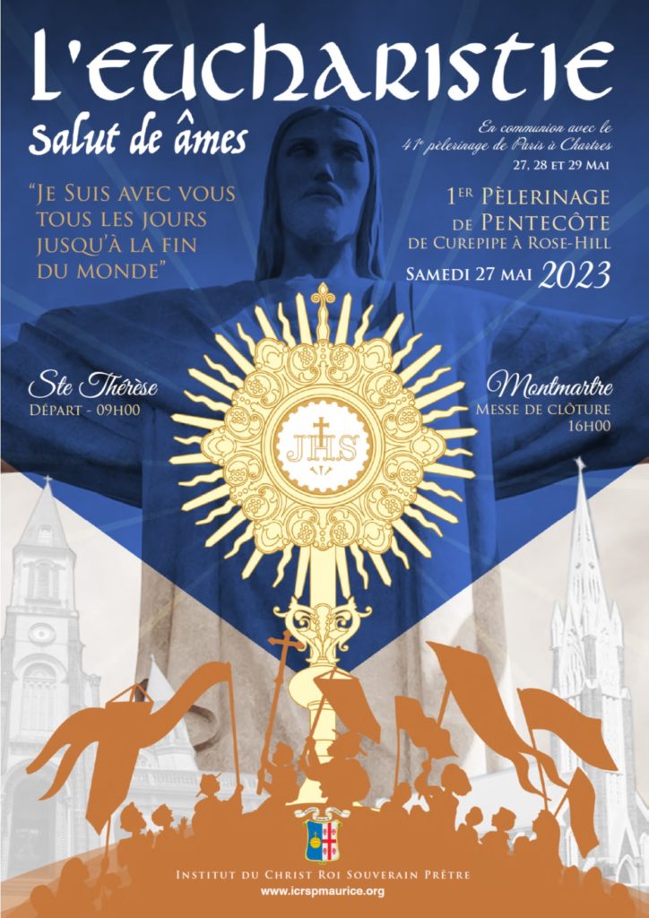 Un Pèlerinage de Pentecôte en union avec le Pèlerinage de Chartres aura lieu le samedi 26 mai à l’Ile Maurice de Curepipe à Rose-Hill. L’aumônerie sera assurée par le chanoine Sigros, ICRSP.