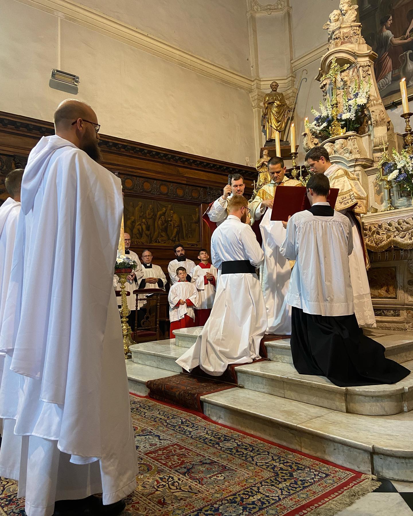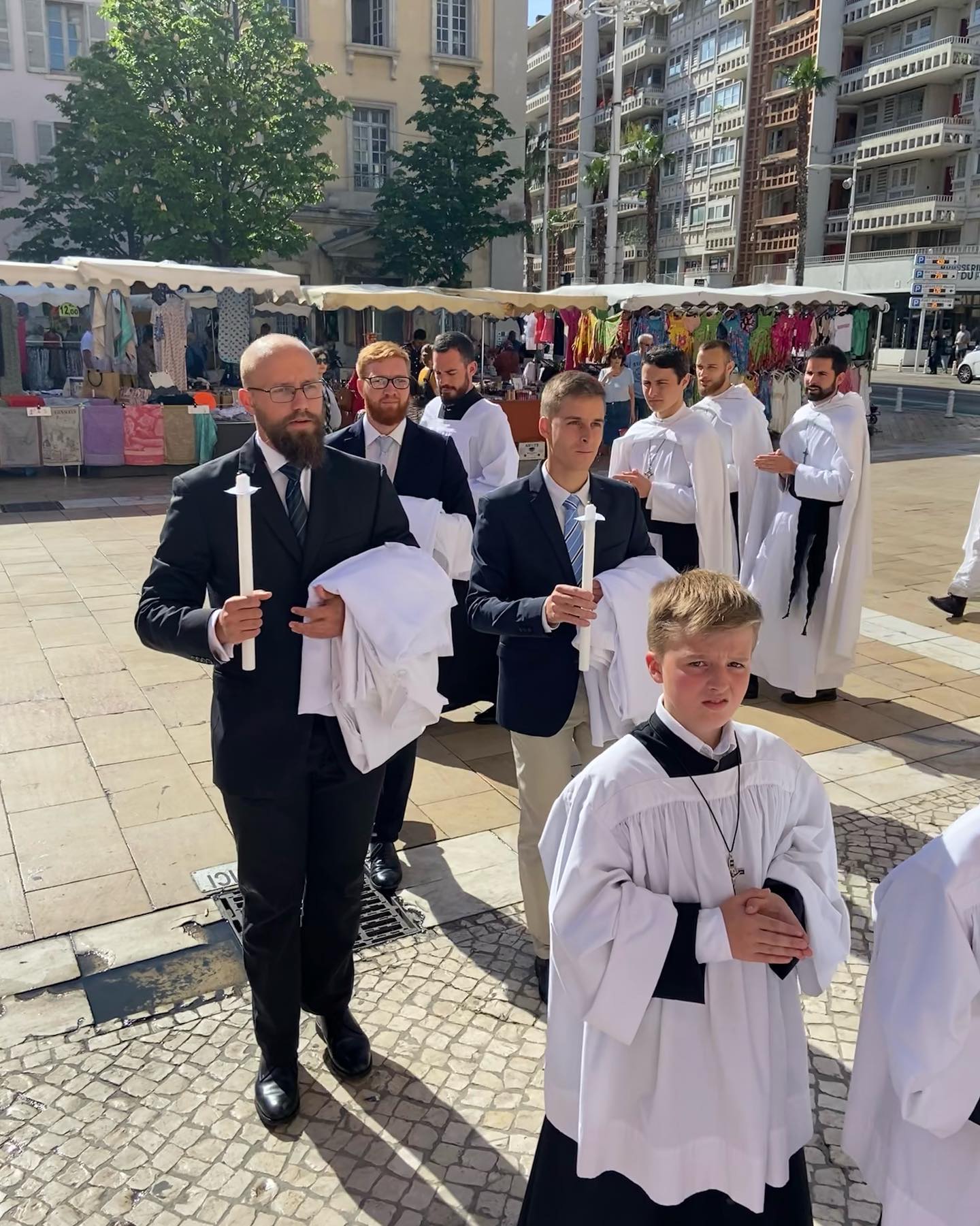Ce samedi 6 mai en l’église Saint-François de Paule de Toulon, 3 séminaristes ont reçu l’habit des Missionnaires de la Miséricorde Divine des mains de leur supérieur, l’abbé Jean-Raphaël Dubrule.