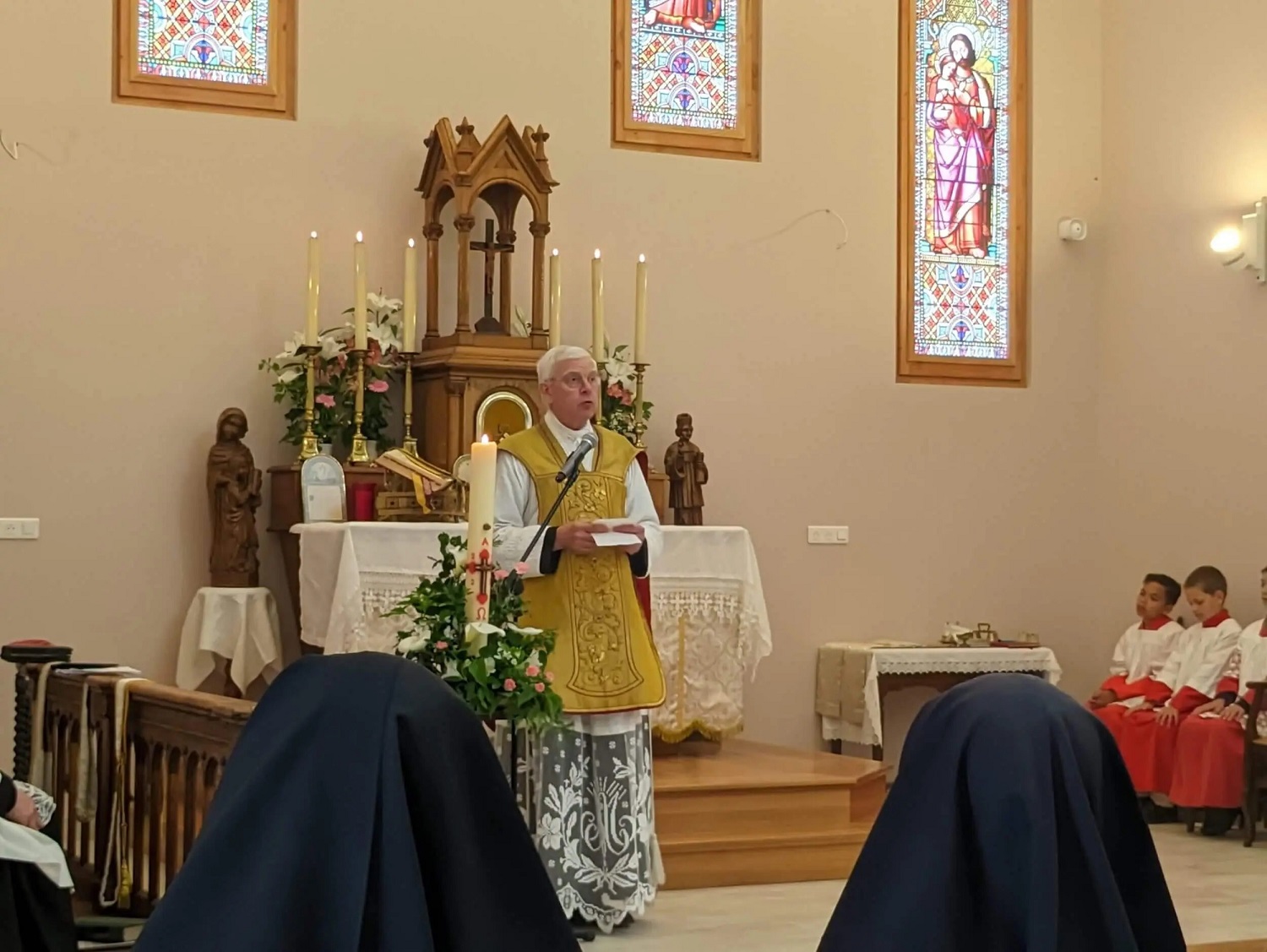 Le 8 mai dernier, en présence d’un peu plus de 160 personnes (et de quelques gouttes de pluie bretonne !), M. l’abbé de Jorna a procédé à la bénédiction de la nouvelle chapelle Saint-Yves à Guer. Il a ensuite célébré la Messe de l’Apparition de Saint Michel au Mont-Gargan. Un vin d’honneur puis un repas ont clôturé cet évènement qui devrait marquer l’apostolat de la Fraternité dans cette région du Morbihan où est établie l’école militaire de Saint-Cyr-Coëtquidan.