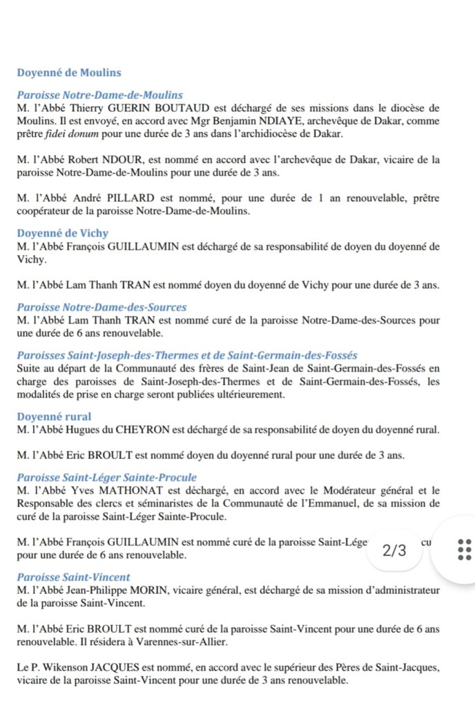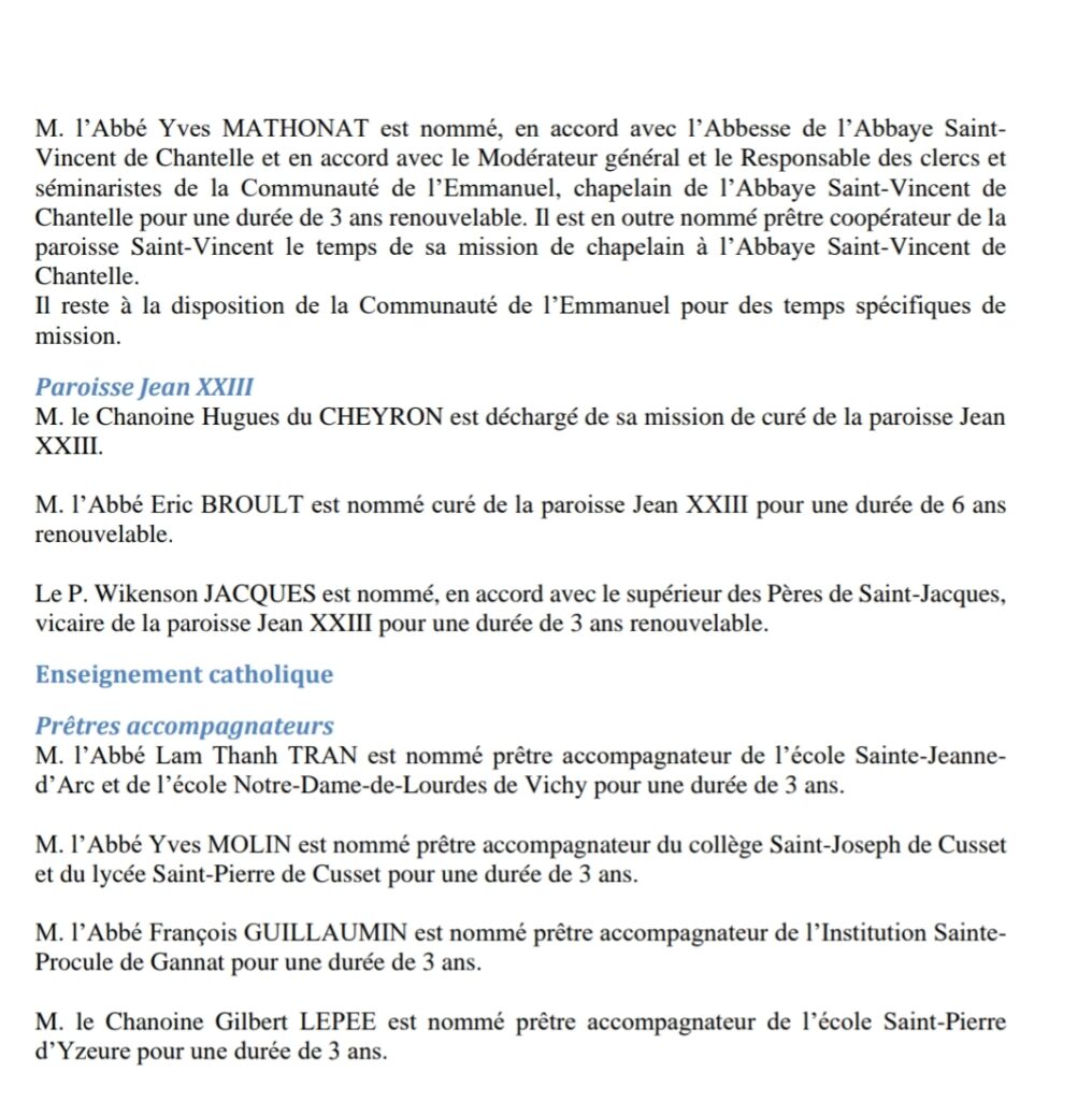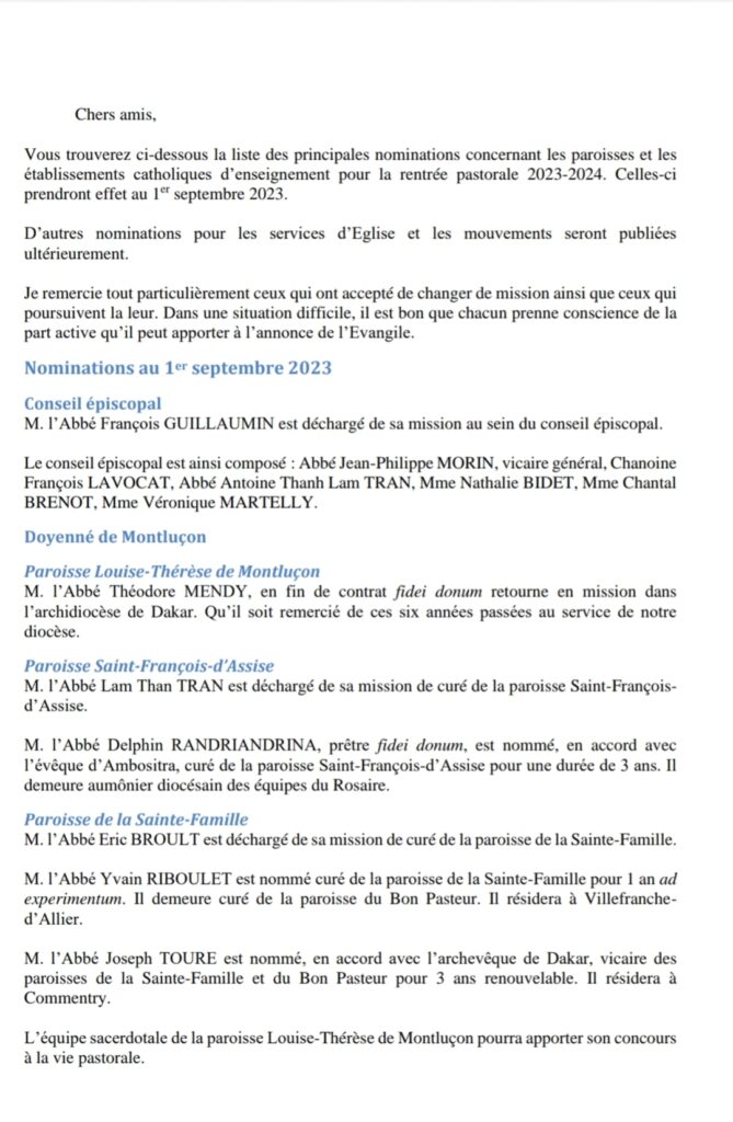 Elles sont précédées d’un long texte du nouvel évêque, Mgr Beaumont, qui explique être dans l’incapacité de nommer autant de curés qu’il y a de paroisses, puis qui cite le pape François et en appelle à la synodalité. Le dernier qui s’en va ferme la porte et éteint la lumière.