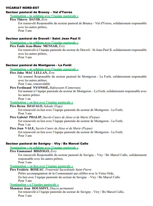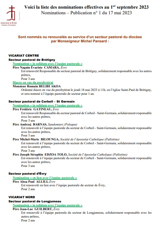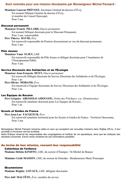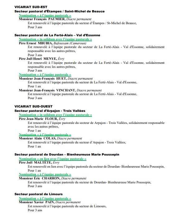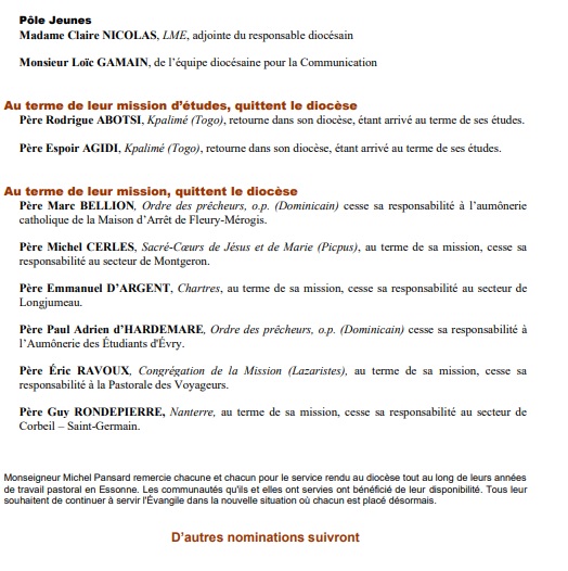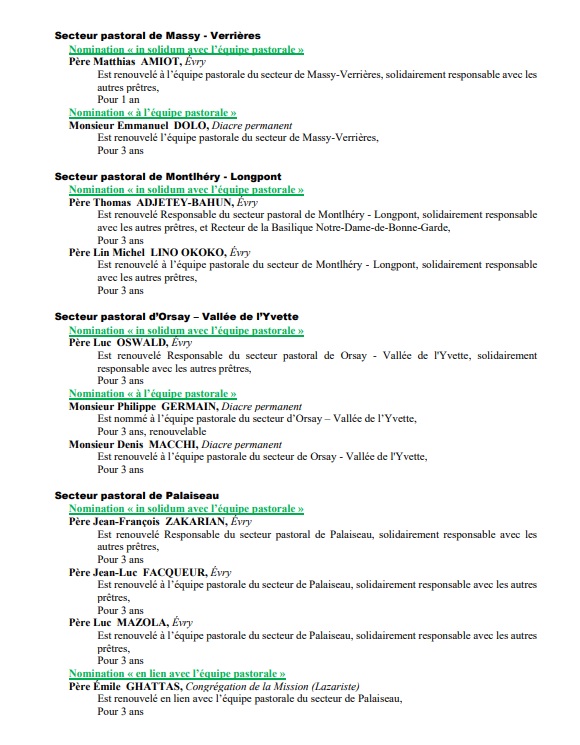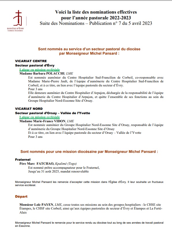 J’ai envoyé un message aux responsables du diocèse d’Evry pour leur rappeler que selon l’Instruction sur la collaboration des laïcs avec les prêtres (août 1997), les laïcs ou laïques exerçant une charge au service de l’Eglise n’ont pas le droit d’être appelés « aumôniers » ou un quelconque autre titre réservé aux clercs ordonnés.