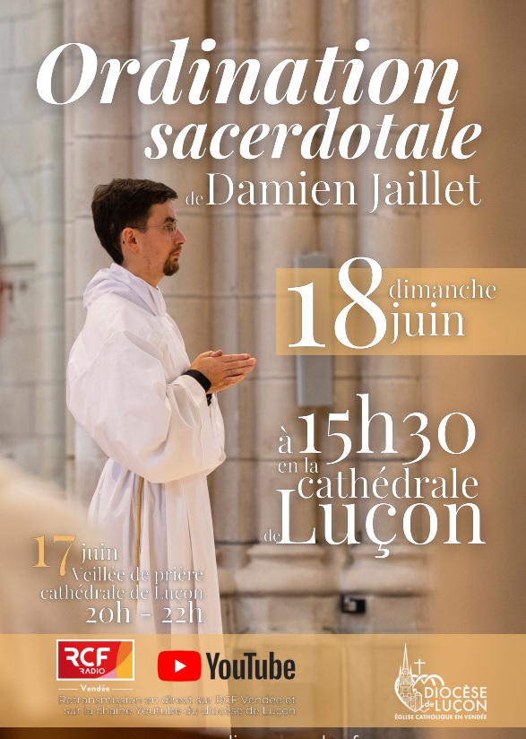 Il y aura une ordination sacerdotale dans le diocèse de Luçon – en plus du montfortain qui a déjà été ordonné prêtre en avril dernier. Damien Jaillet sera ordonné prêtre le 18 juin prochain, annonce le diocèse. Il a été formé à Vénasque, près d’Avignon.