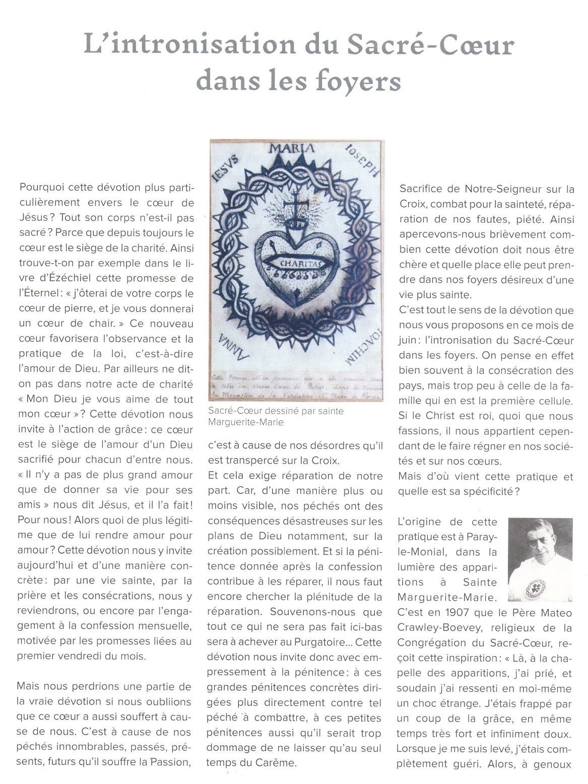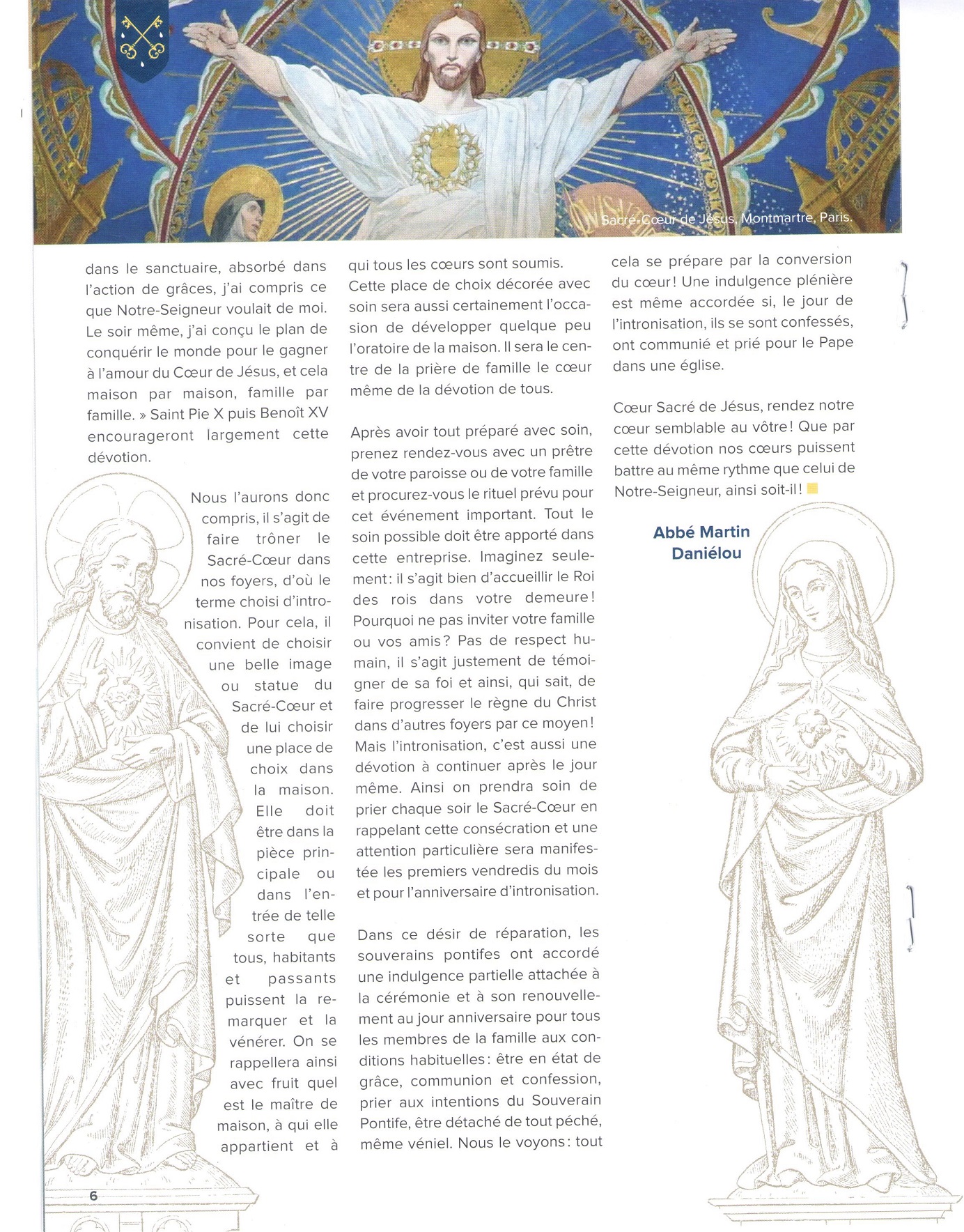 Accueil » Nos archives » L’intronisation du Sacré-Coeur Summorum Pontificum L’intronisation du Sacré-Coeur La dernière lettre aux Amis et Bienfaiteurs de la Fraternité Saint-Pierre (n°115, Juin 2023) évoque notamment l’intronisation au Sacré-Coeur dans les foyers. Fraternité Saint-Pierre (District de France) Article précédentMgr Bertram Meier, un évêque bien disposé pour la Fraternité Saint-Pierre Article suivantLuçon (85) : Damien Jaillet ordonné prêtre le 18 juin 11 juin 2023
