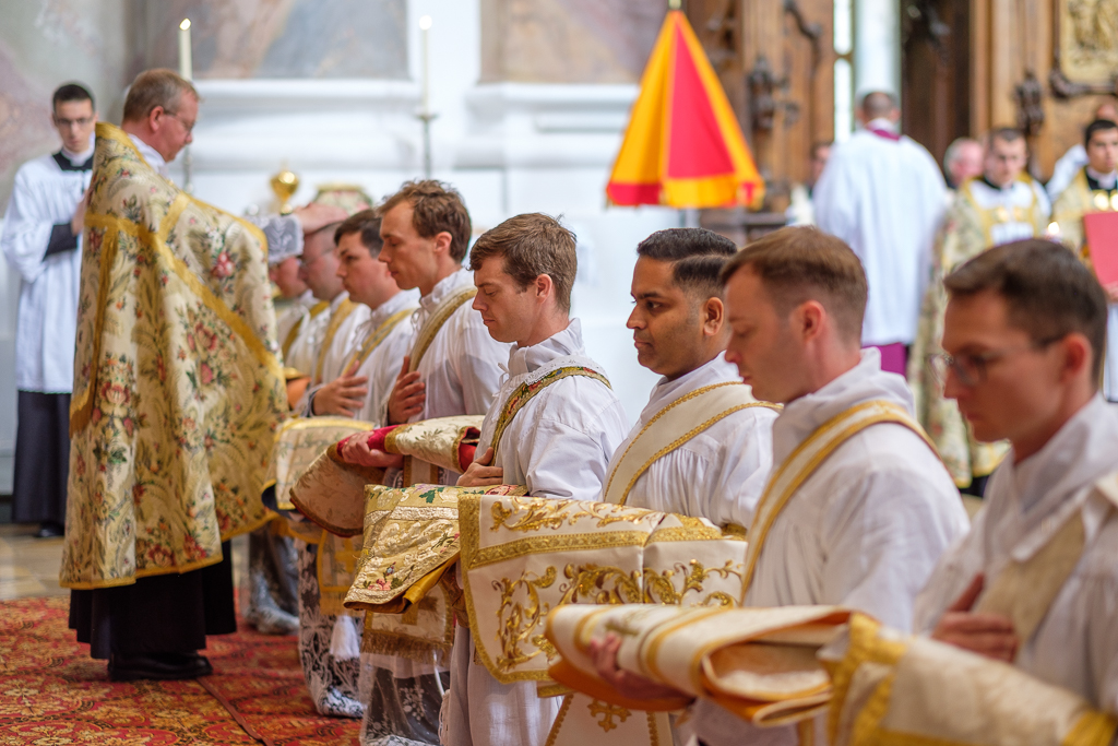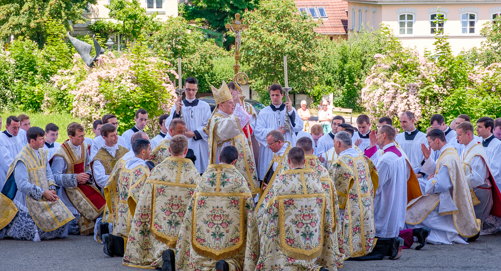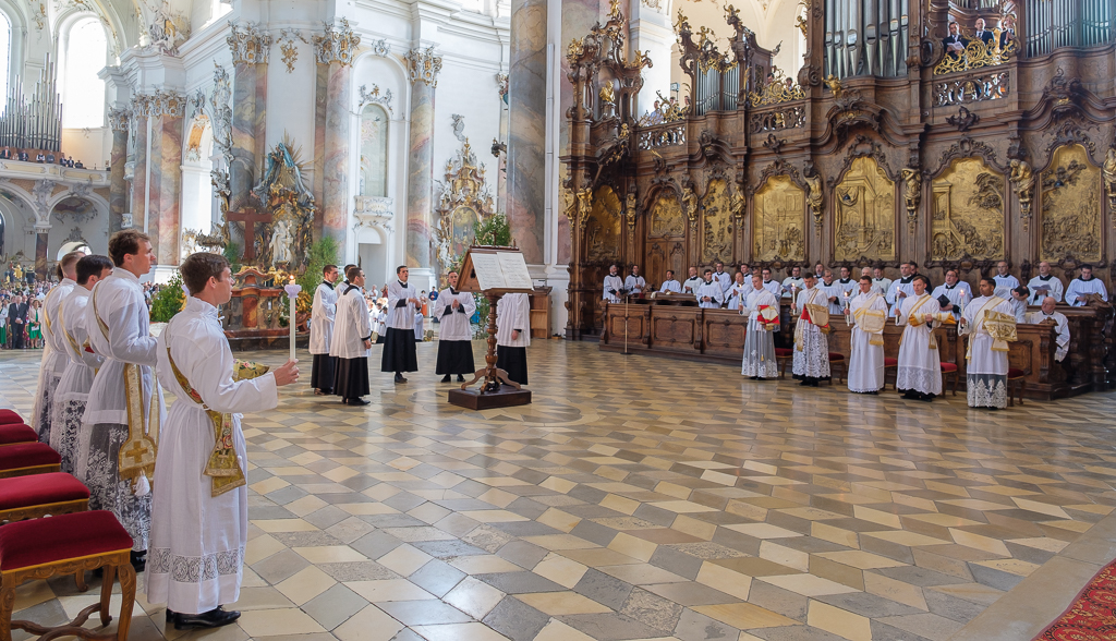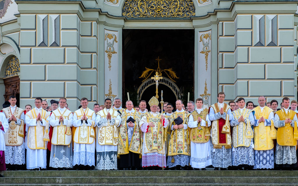 Ce samedi 10 juin, en l’abbatiale bénédictine d’Ottobeuren, Mgr Bertram Meier, évêque d’Ausbourg (Allemagne), a ordonné prêtres dix séminaristes de la Fraternité Saint-Pierre :