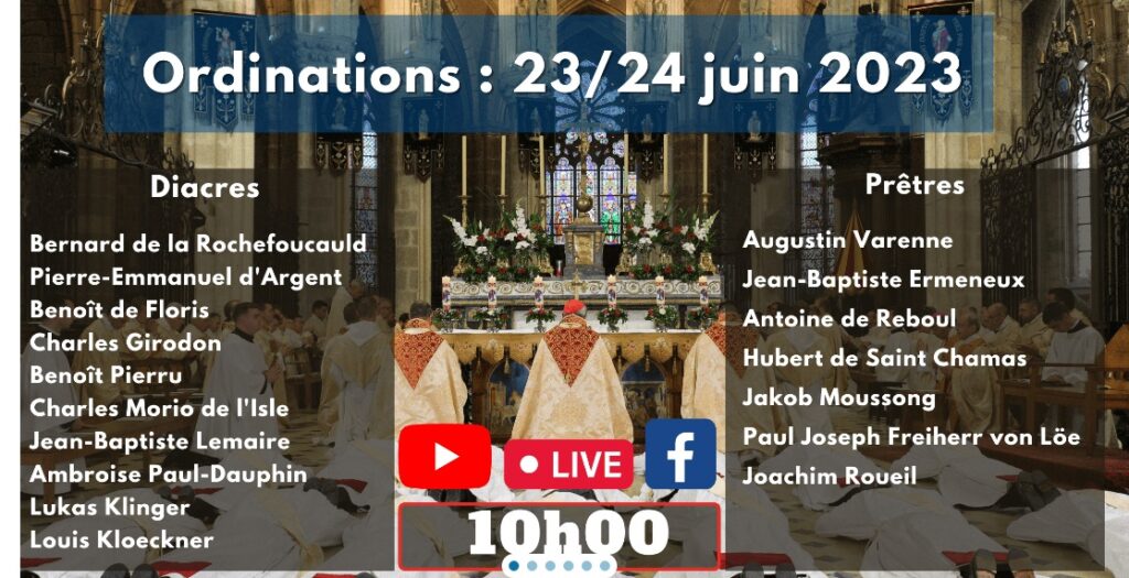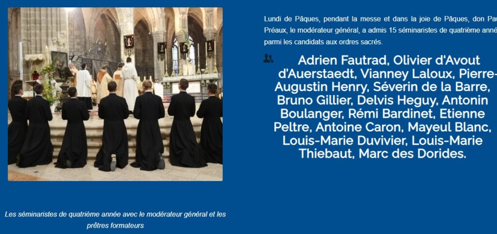 Alors que les ordinations diocésaines semblent fléchir cette année, y compris dans des diocèses plutôt prolifiques (Paris, Vannes…), et que celles de Toulon sont toujours bloquées, la Communauté Saint-Martin confirme son dynamisme avec 7 ordinations de prêtres et 10 ordinations de diacres prévues les 23 et 24 juin prochains.