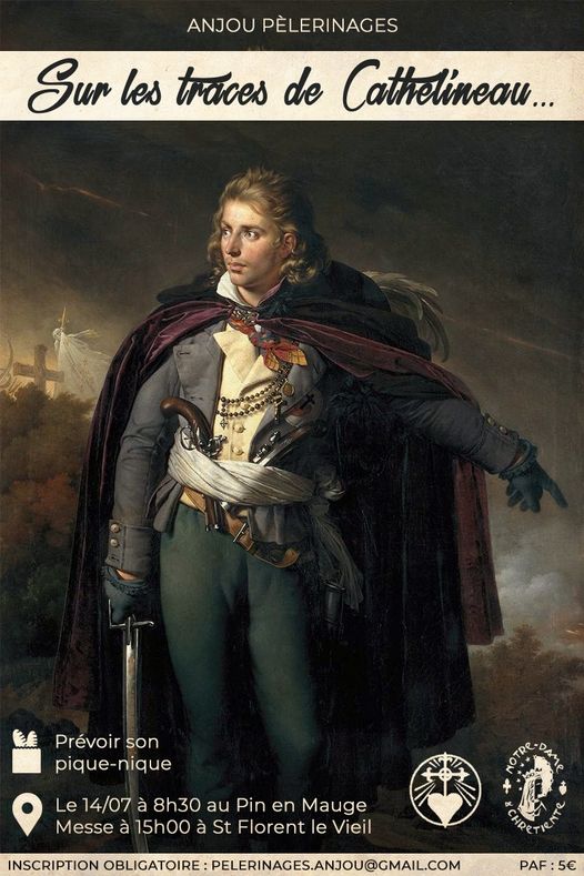 Vendredi 14 juillet, l’association Anjou Pèlerinages organise son 6è pèlerinage vers Saint Florent Le Vieil en l’honneur du Saint de l’Anjou : Jacques Cathelineau. La marche est d’environ 20 km. [Voir notre article de l’an passé]