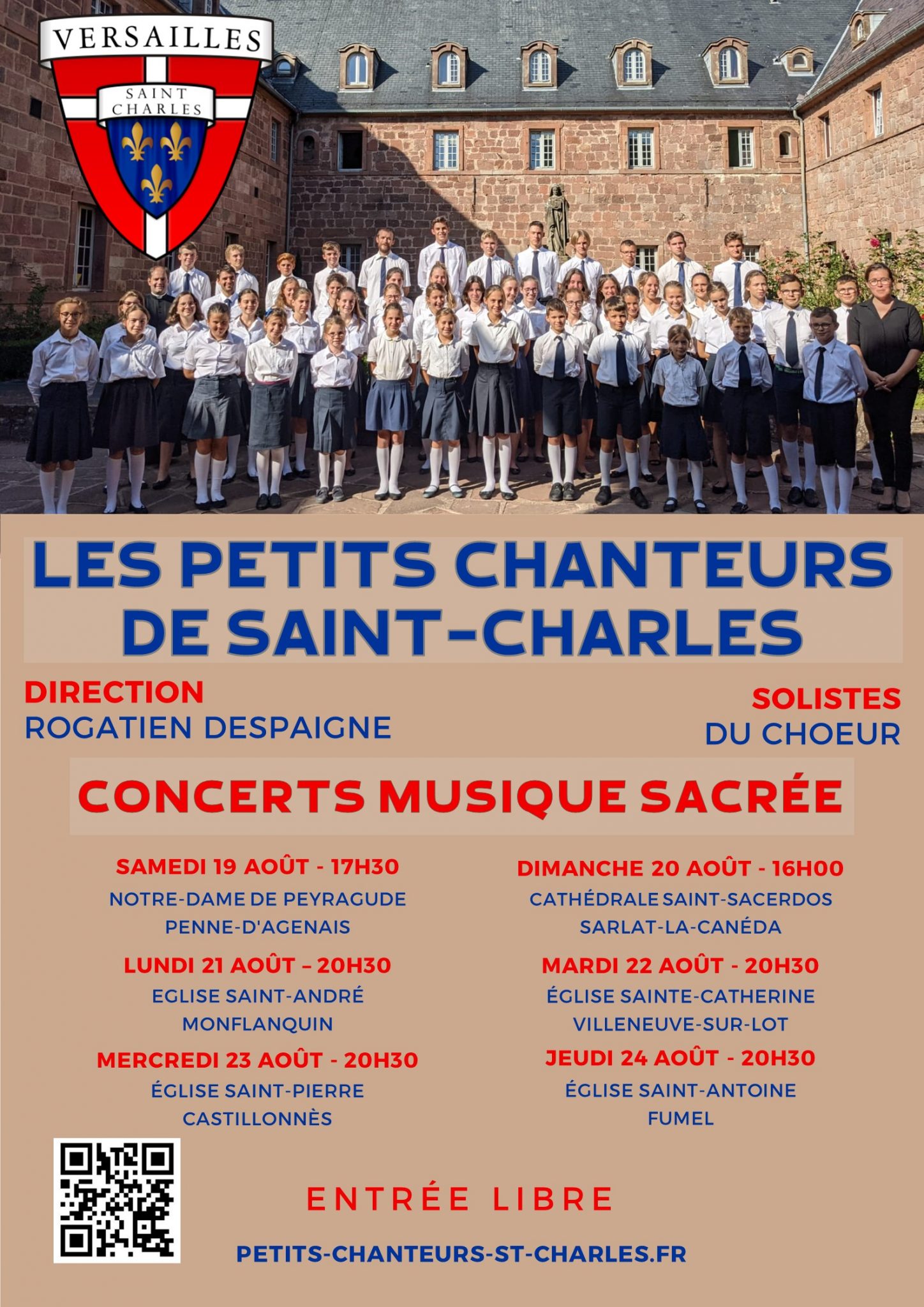 Les Petits-Chanteurs de Saint-Charles (Versailles) seront en tournée en Dordogne et dans le Lot-et-Garonne au mois d’août :