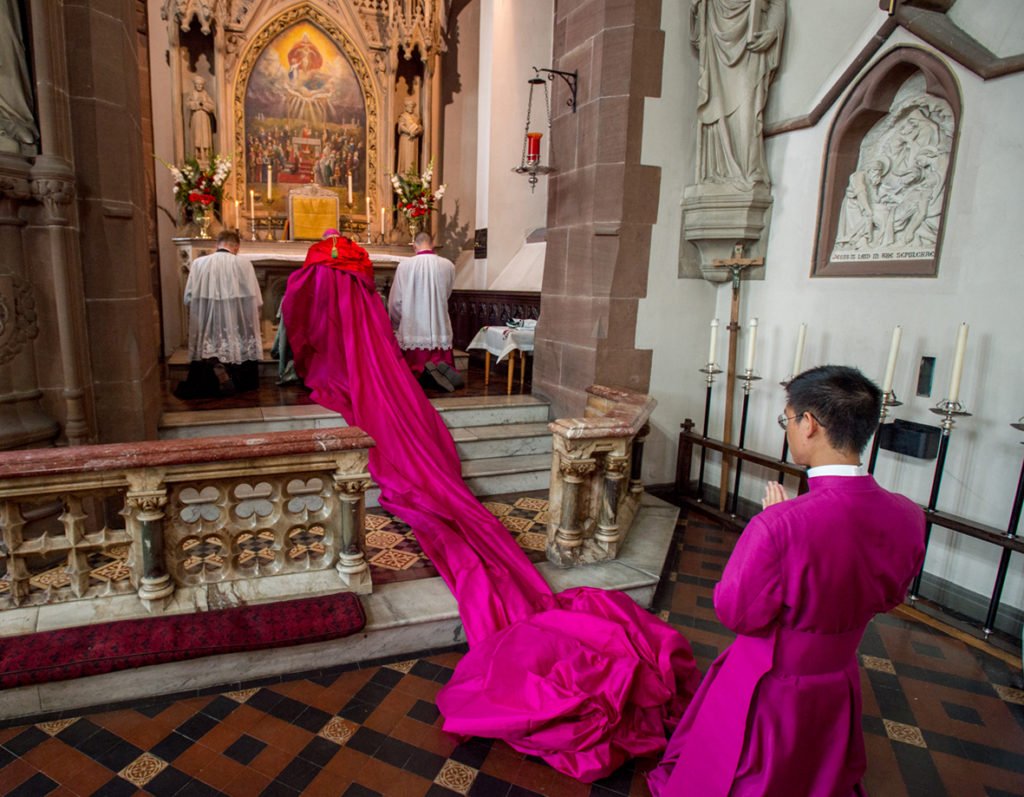 La cappa magna est aussi portée par l’archevêque de Liverpool:
