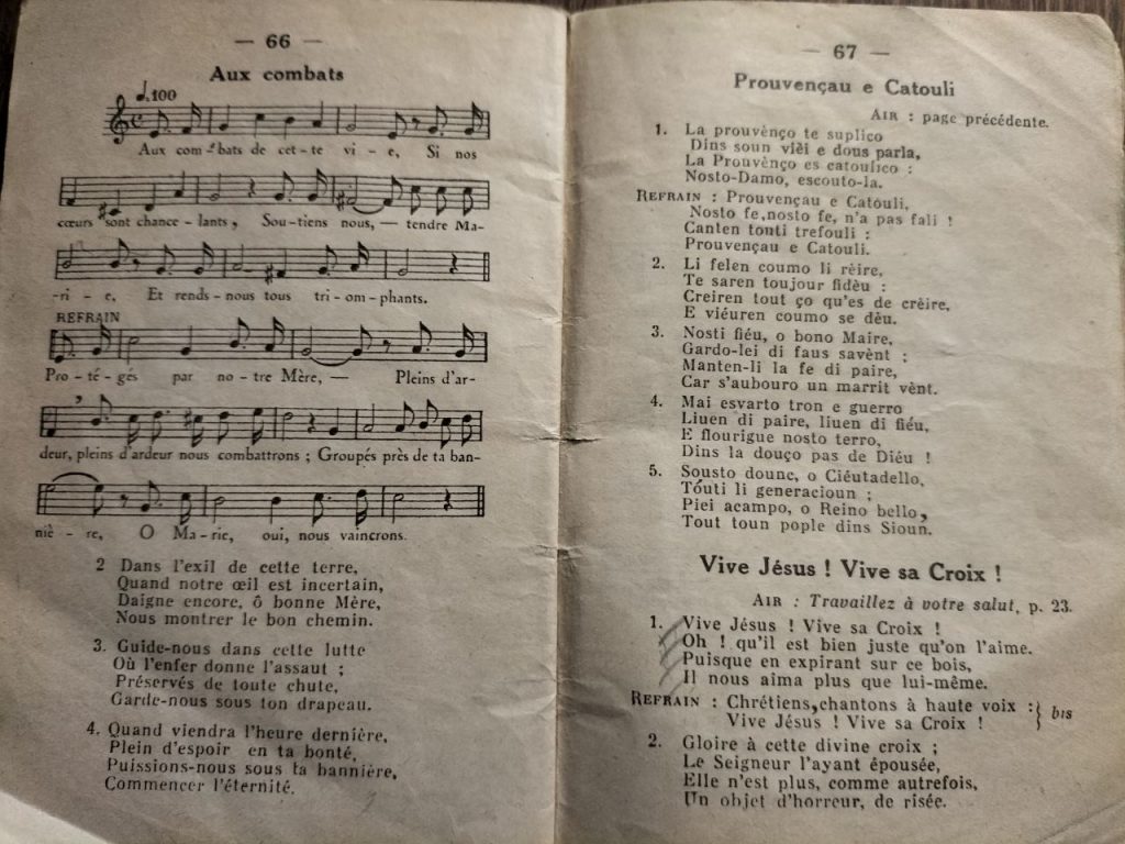 Voici la partition et les paroles du cantique Prouvençau è Catouli (ou cantique à Notre-Dame de Provence), écrit par Malachie Frizet en 1875.
