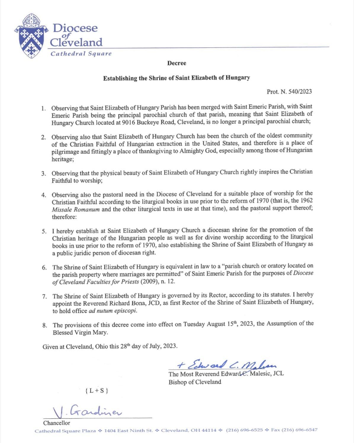 Le diocèse de Cleveland (Etat de l’Ohio, nord-est des Etats-Unis) compte plusieurs messes traditionnelles dont près de 5 dans la ville de Cleveland elle-même. Dans le cadre de la fusion de deux paroisses, Mgr Edward Malesic, évêque de Cleveland, a érigé fin juillet en sanctuaire diocésain, l’église Sainte Elisabeth de Hongrie de Cleveland, pour les fidèles de langue hongroise et pour la messe traditionnelle :