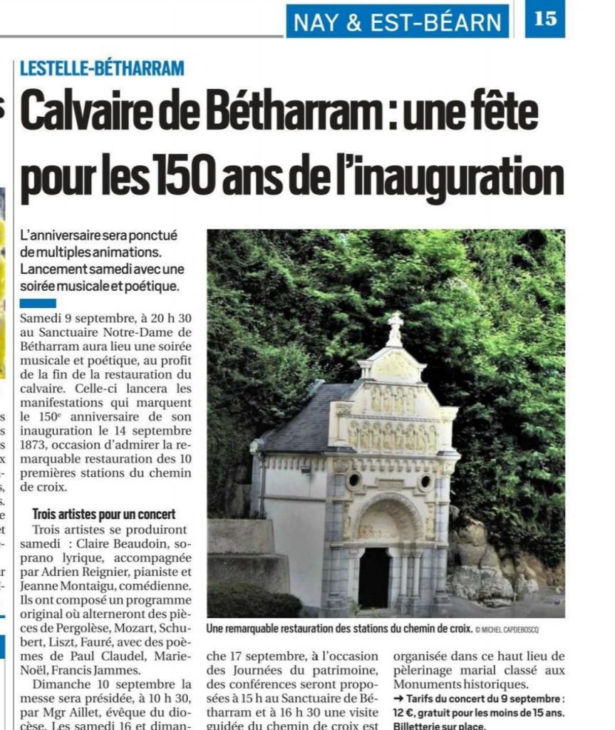 Pour les 150 ans du Calvaire de Bétharram, au sanctuaire du même nom dans le Béarn (diocèse de Bayonne), un certain nombre de festivités sont organisées ces 9 et 10 septembre – dont une messe solennelle célébrée le 10 septembre à 10h30 par Mgr Aillet.