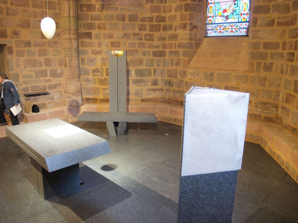 Il n’y a pas qu’à Notre-Dame de Paris que le nouveau mobilier liturgique fait débat, voire peut sembler inadapté au lieu; un exemple parmi tant d’autres d’églises de nos campagnes restaurées et remises au goût du jour, en 2014-2016 par le collectif d’architectes la Gare – Saint-Barthélémy d’Objat, en Corrèze, dans le diocèse de Tulle.