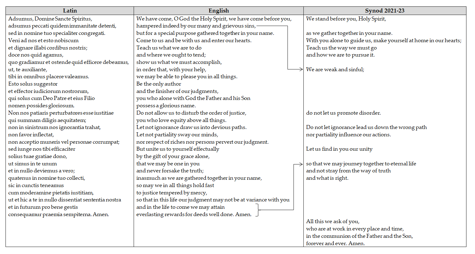 L’Esprit-Saint est invoqué pour le synode sur la synodalité, mais la prière « Adsumus, Domine Sancte Spiritus » a été sérieusement altérée avec des omissions significatives.