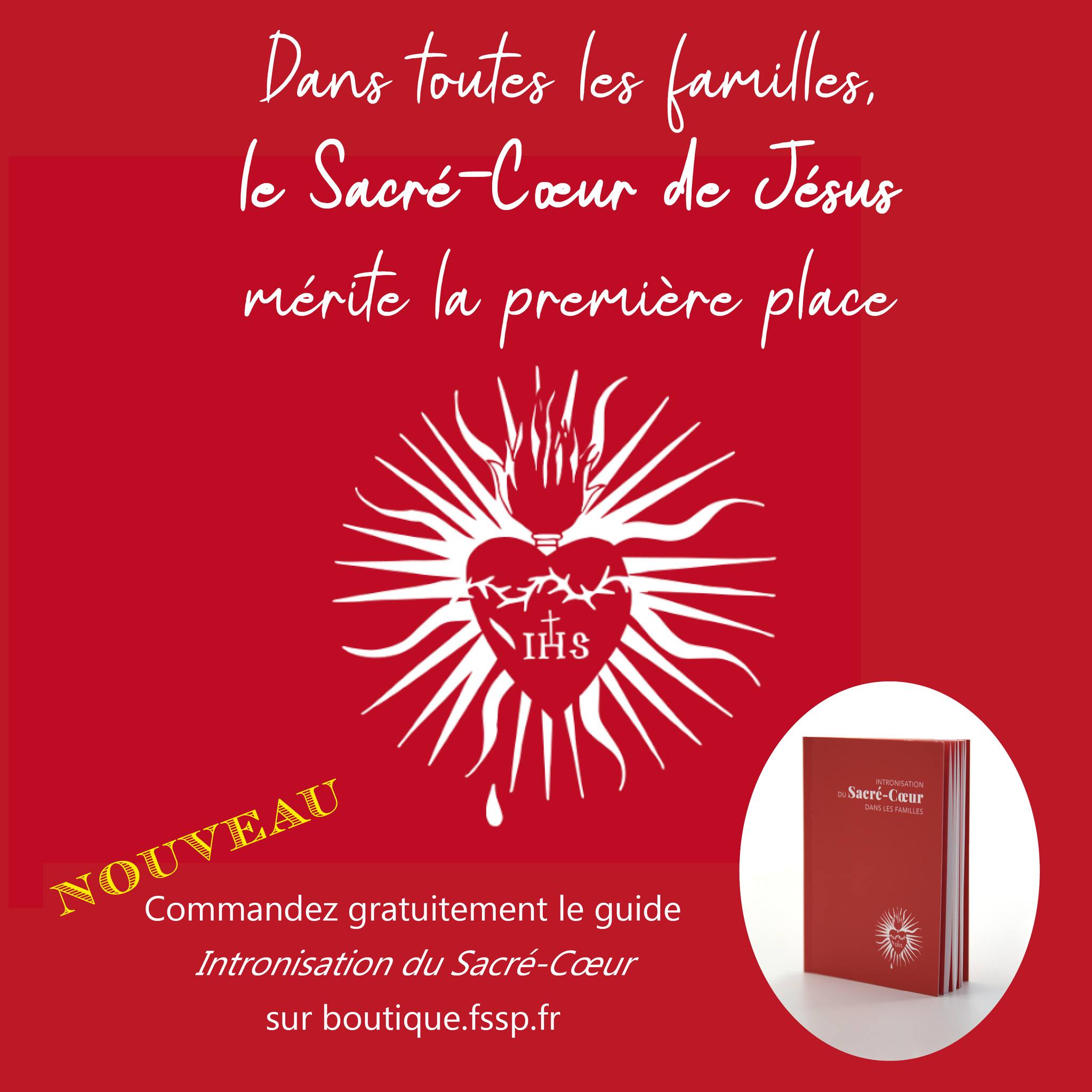 Les prêtres de la Fraternité Saint-Pierre vous proposent un livret intitulé « intronisation du Sacré-Cœur dans les familles ». Pour connaitre et pratiquer cette belle dévotion au Sacré-Cœur.