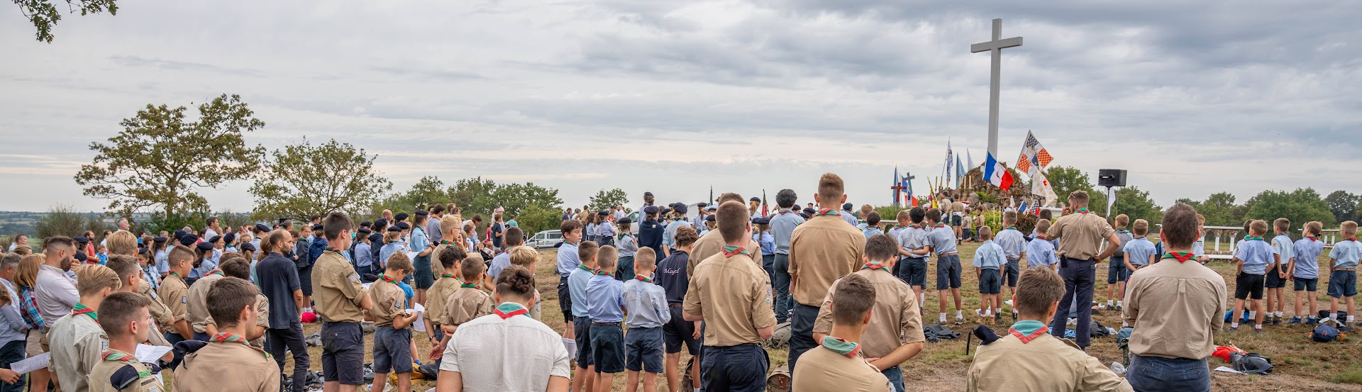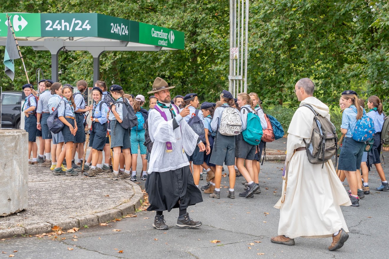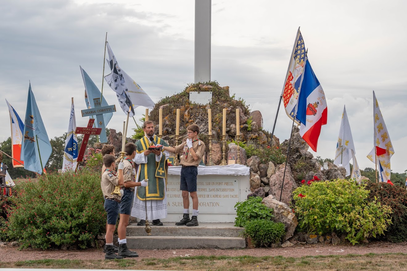 Les paroissiens, les scouts, guides, louveteaux et louvettes des Groupes Europa Scouts de Nantes, les prêtres de la Fraternité Saint-Pierre (Nantes) aidés pour la circonstance par deux Pères de la Fraternité Saint Vincent Ferrier ont pèleriné jusqu’aux Rinfillières où a eu lieu comme chaque année la messe de clôture.